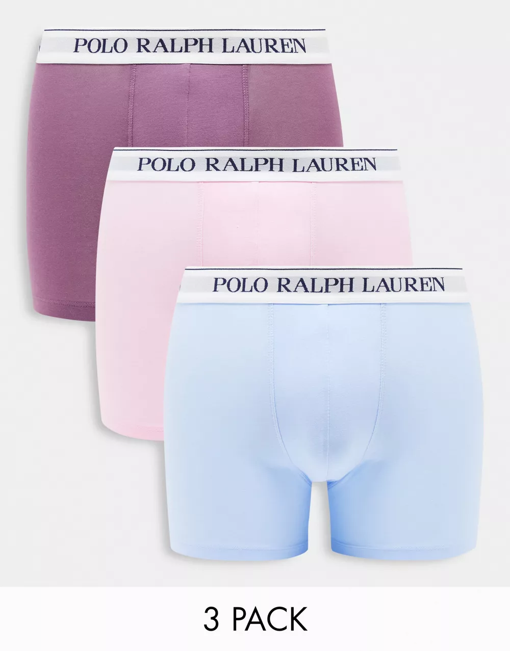 - Polo Ralph Lauren 3 pack trunks in purple/blue/pink with contrasting logo waistband