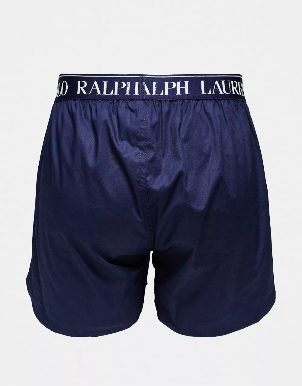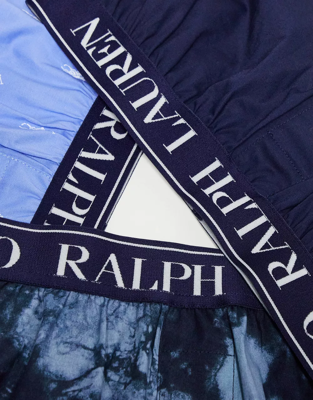 - Polo Ralph Lauren 3 pack woven boxer shorts in blue all over pony, navy and tie dye with logo waistband