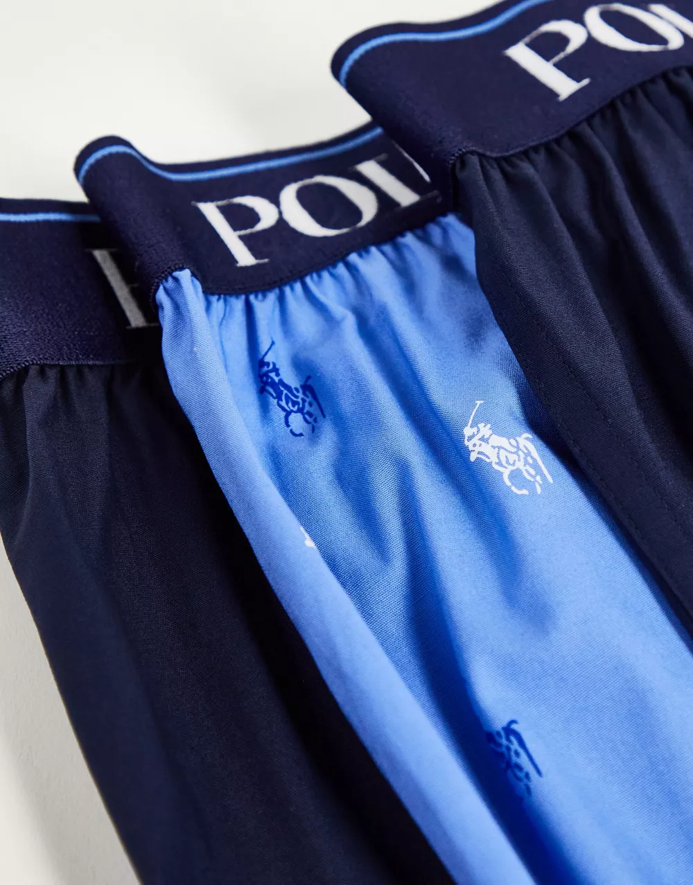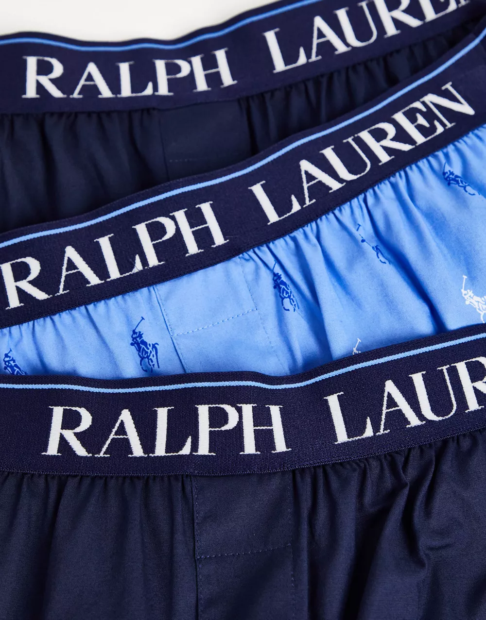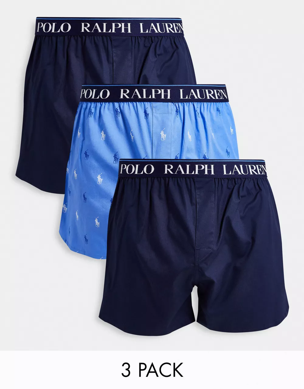 - Polo Ralph Lauren 3 pack woven boxers in navy with logo waistband