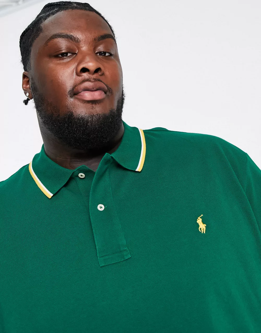 - Polo Ralph Lauren Big & Tall regular fit pique polo with tipped collar in dark green
