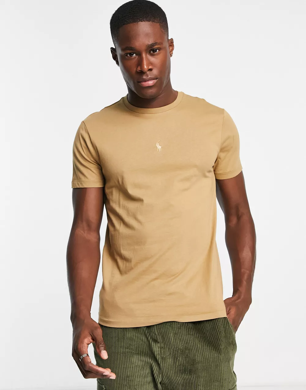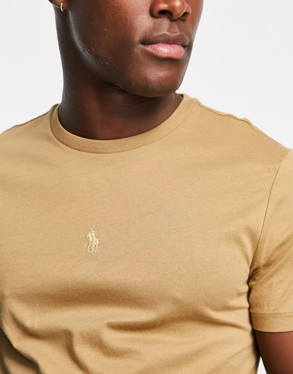 - Polo Ralph Lauren central icon logo t-shirt custom fit in tan