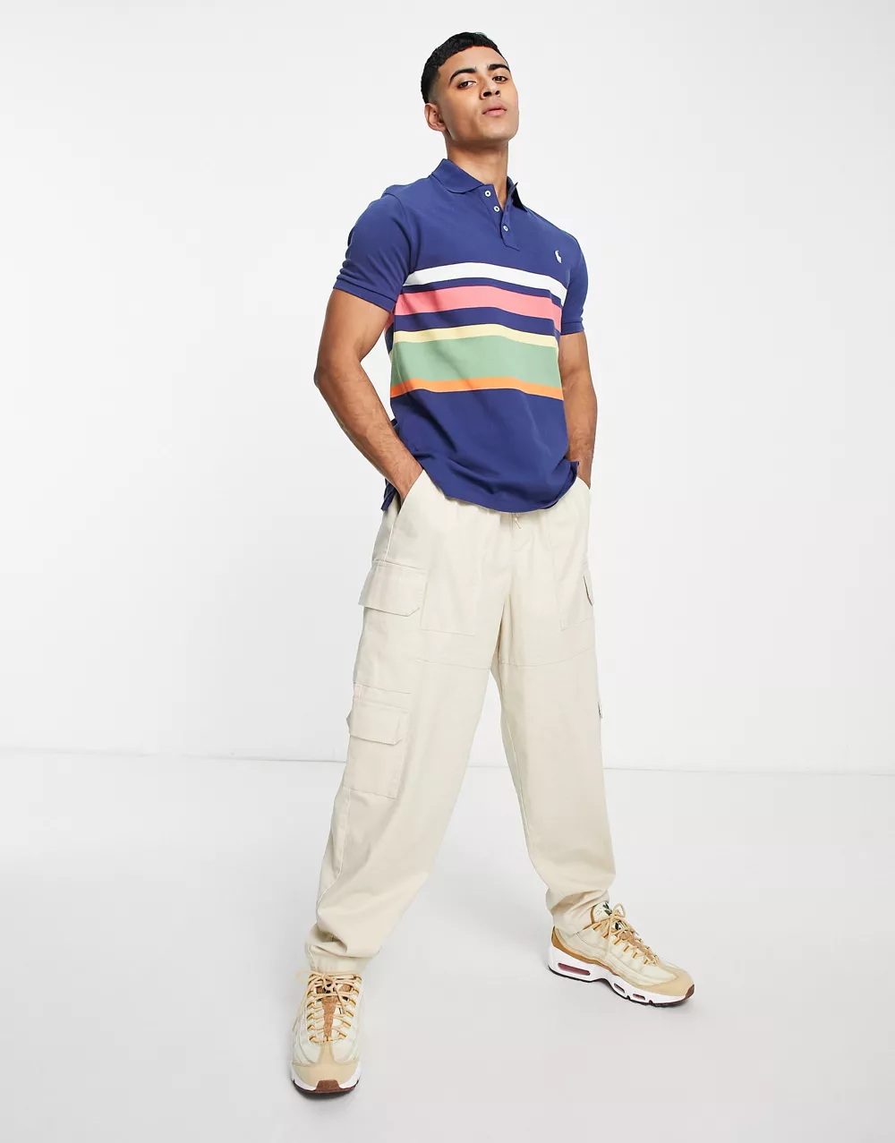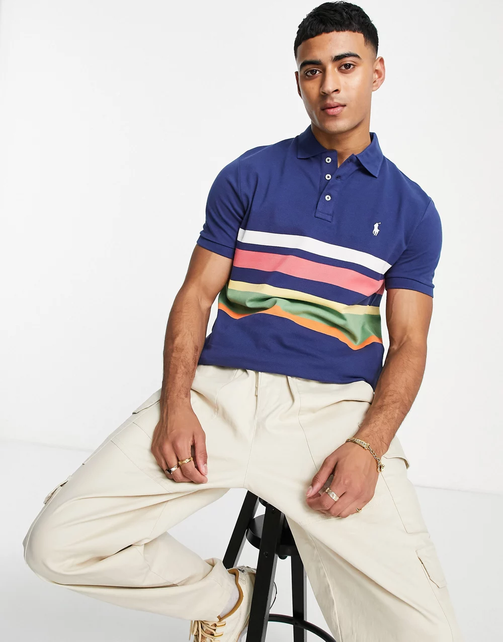 - Polo Ralph Lauren icon logo chest multi stripe pique polo in navy