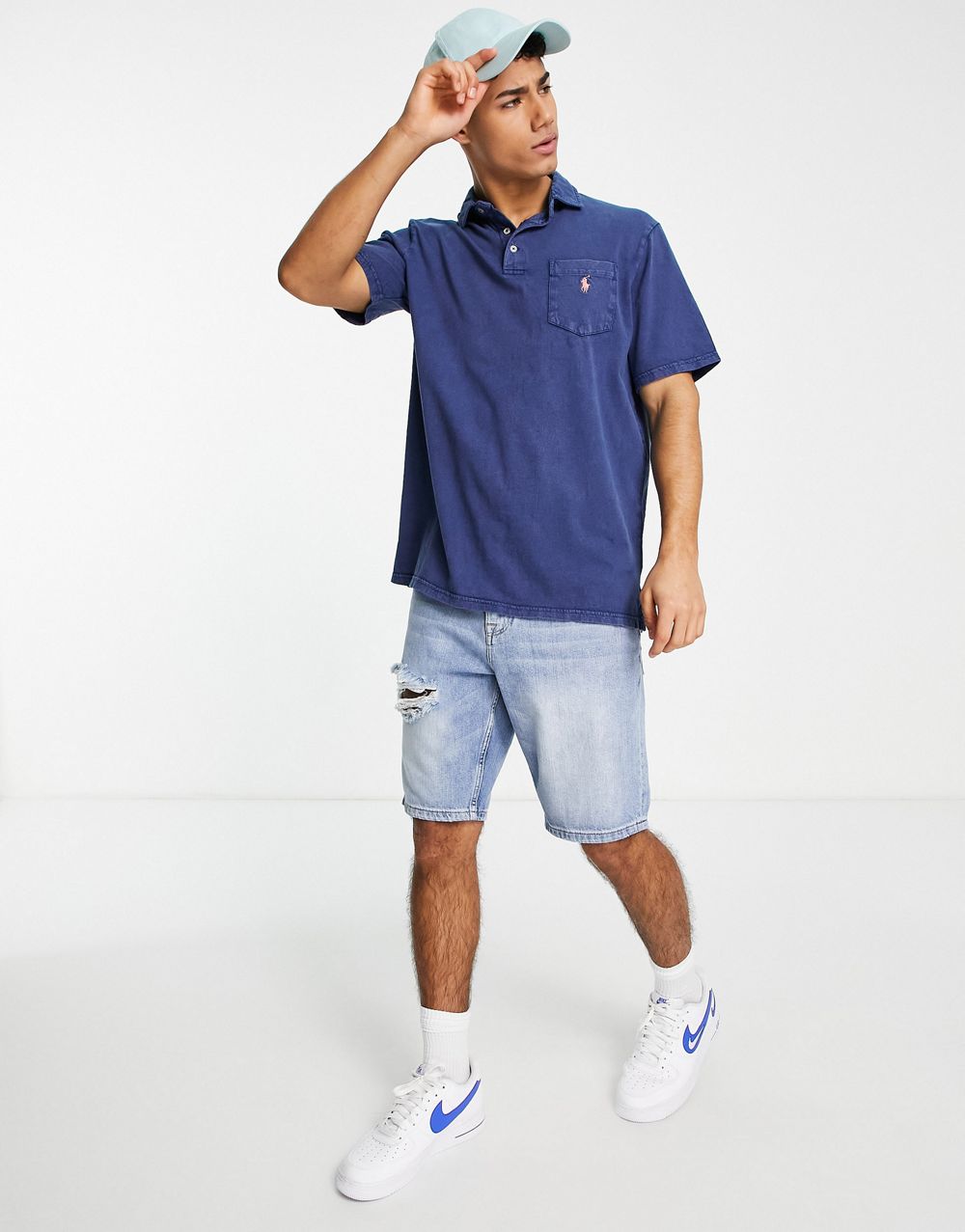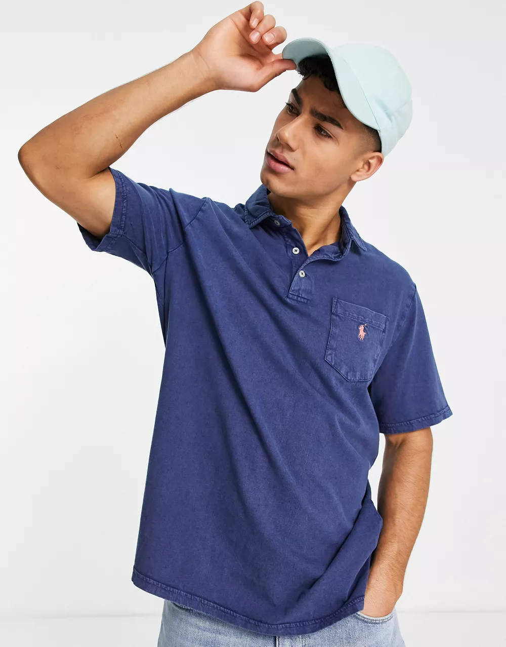 - Polo Ralph Lauren icon logo pocket cotton linen polo in navy