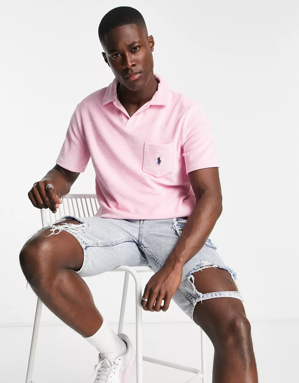 - Polo Ralph Lauren icon logo pocket cotton terry polo in pink