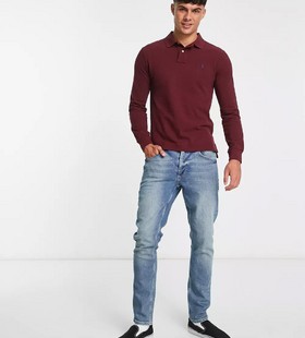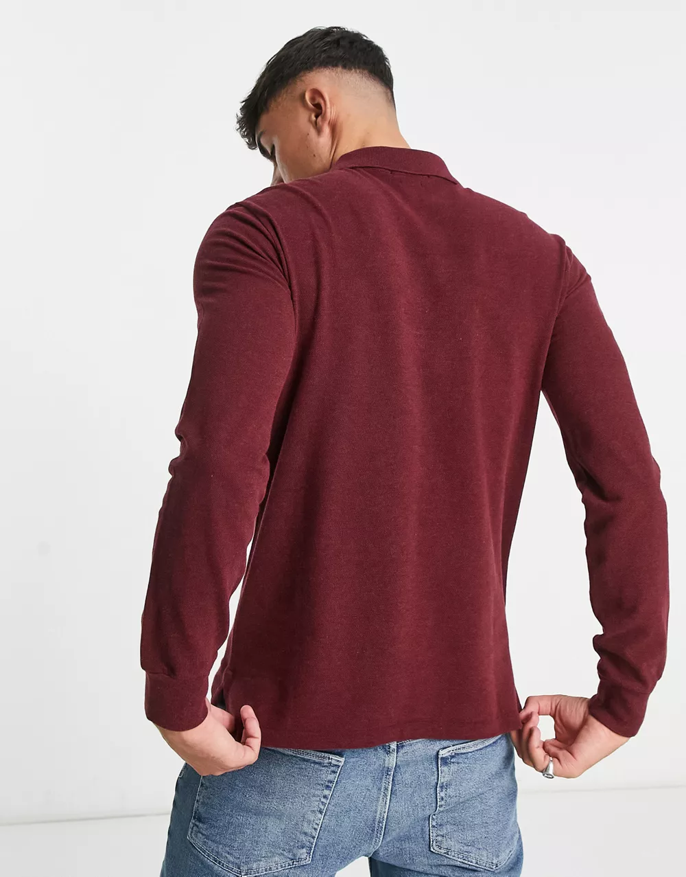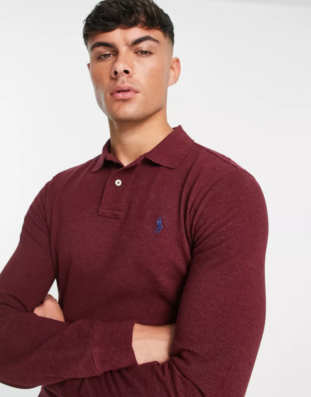 - Polo Ralph Lauren icon logo slim fit long sleeve pique polo in burgundy marl