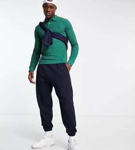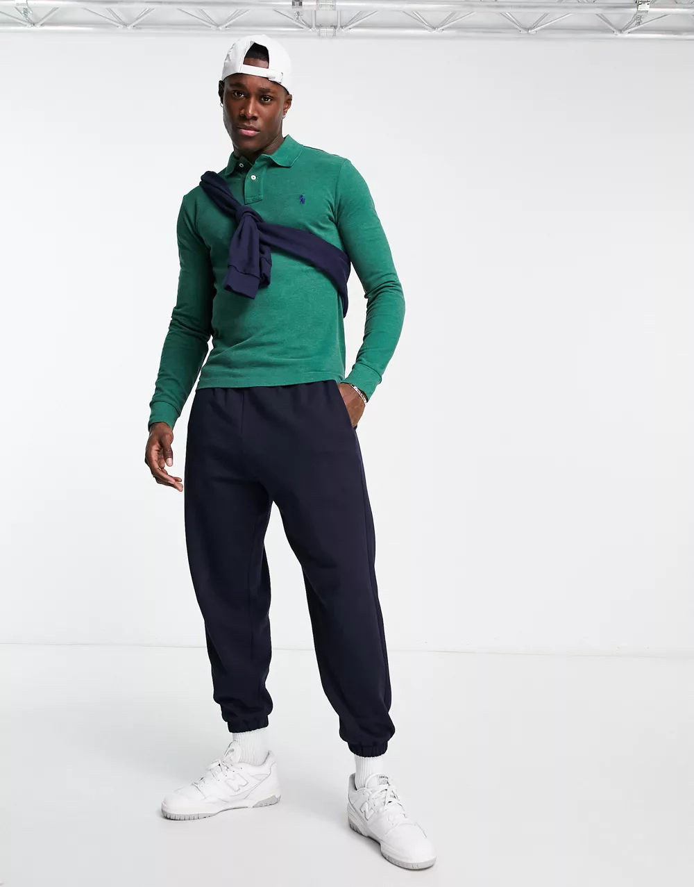 - Polo Ralph Lauren icon logo slim fit long sleeve pique polo in green marl