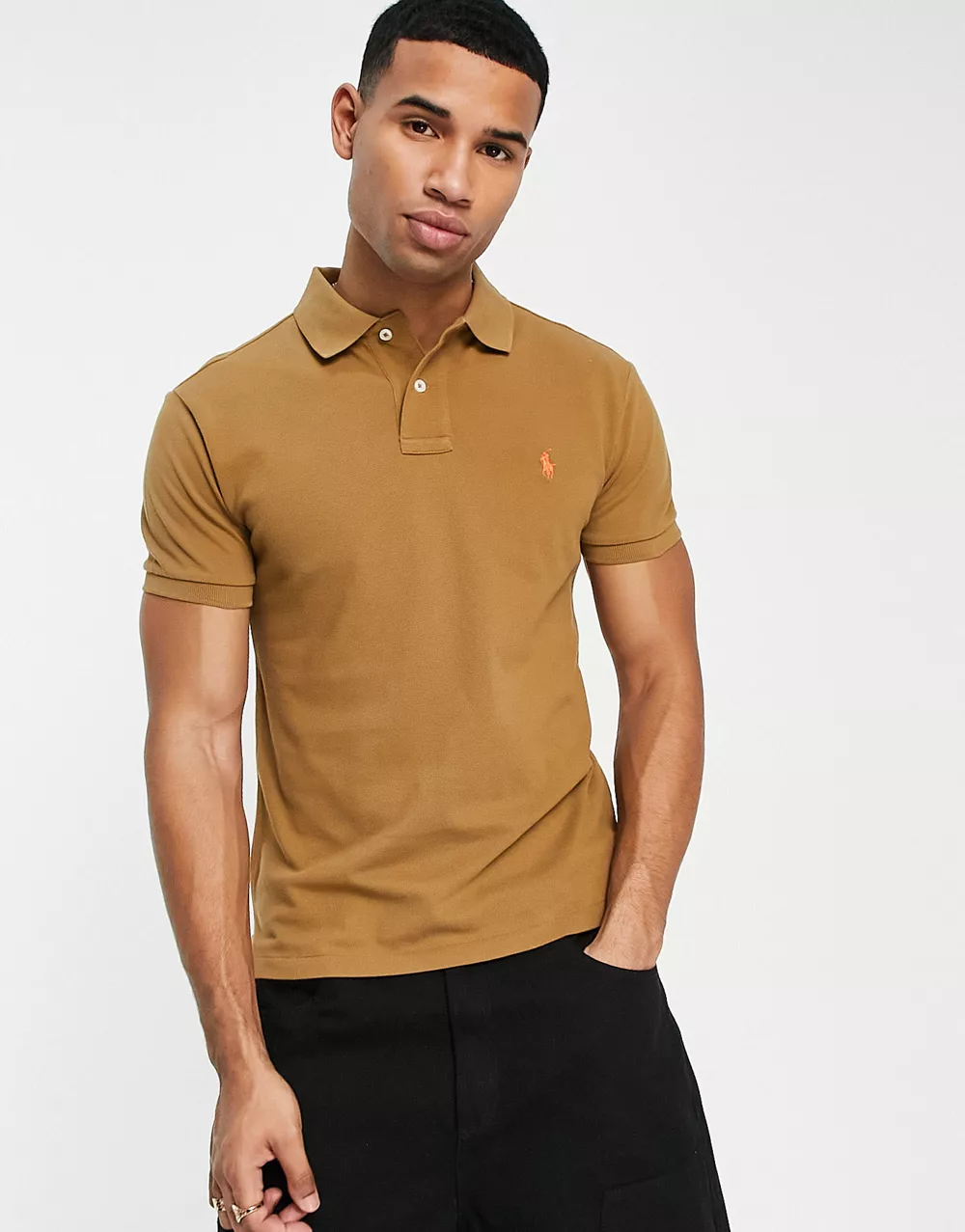 - Polo Ralph Lauren icon logo slim fit pique polo in tan