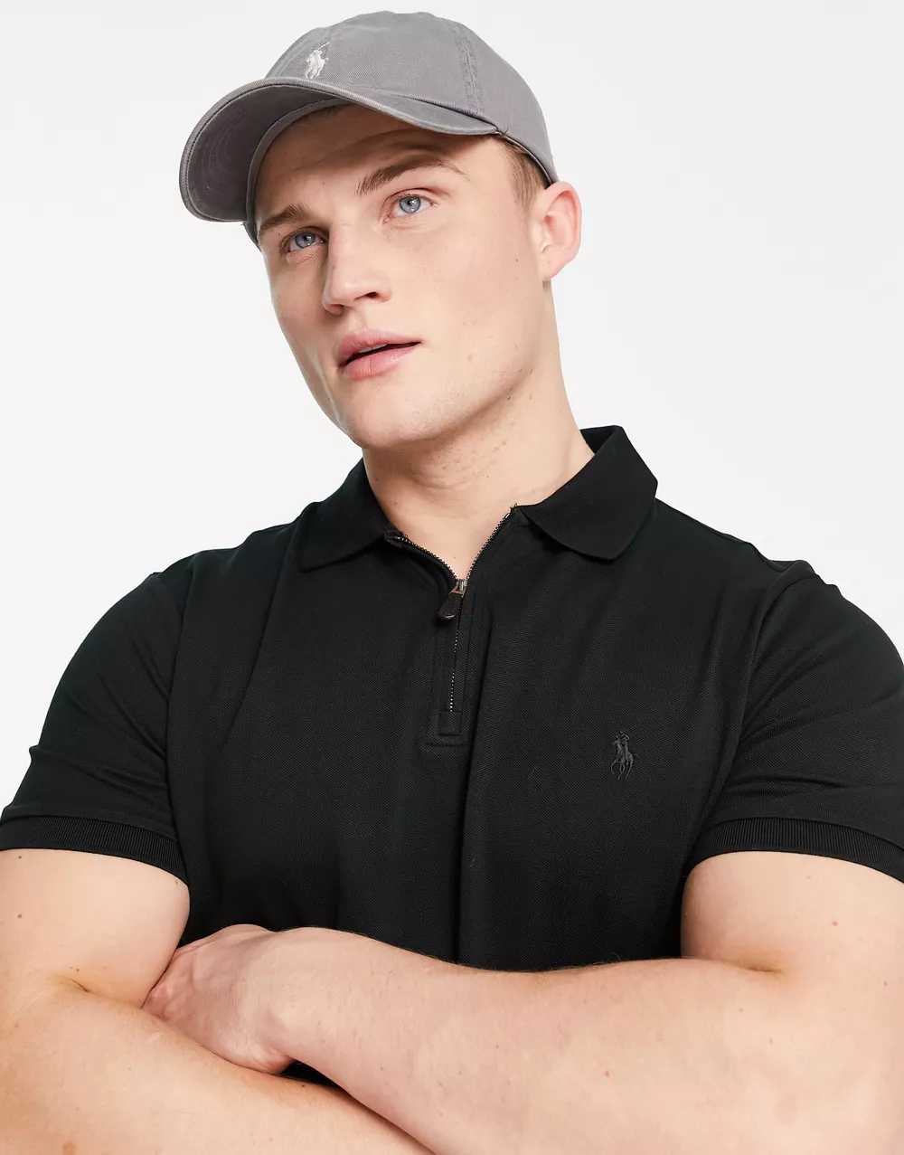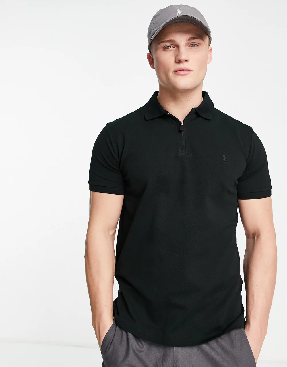 - Polo Ralph Lauren icon logo zip neck stretch pique polo in black