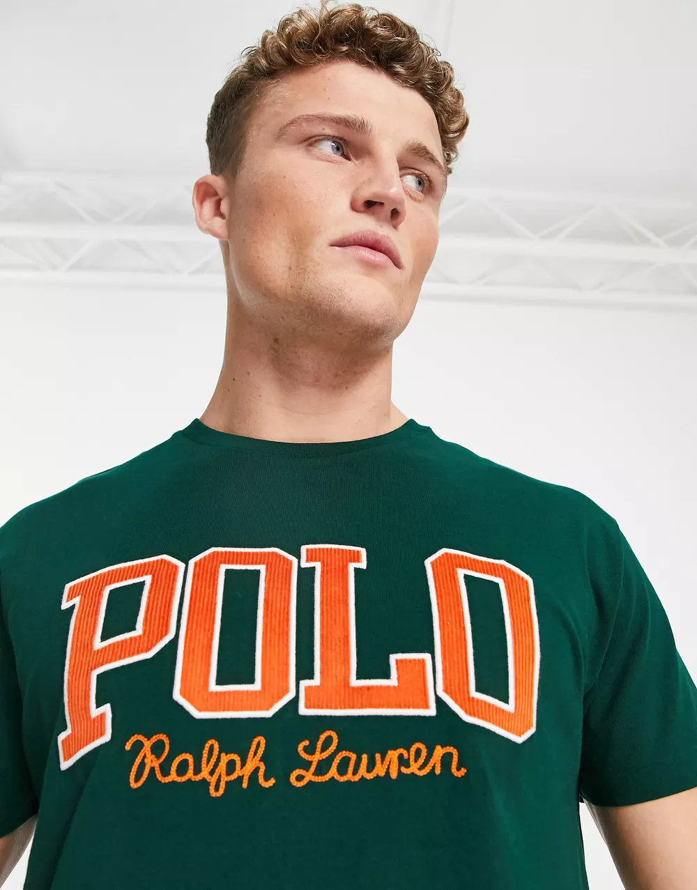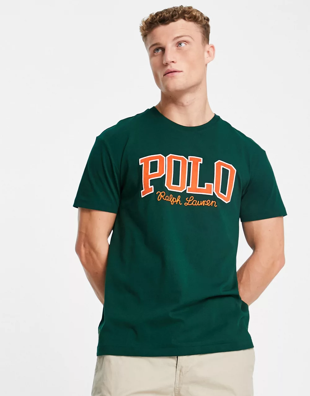 - Polo Ralph Lauren large collegiate logo t-shirt classic fit in dark green