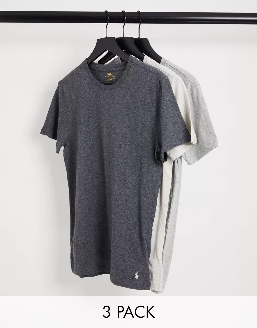 - Polo Ralph Lauren lounge 3 pack t-shirts in heather/grey/charcoal with logo