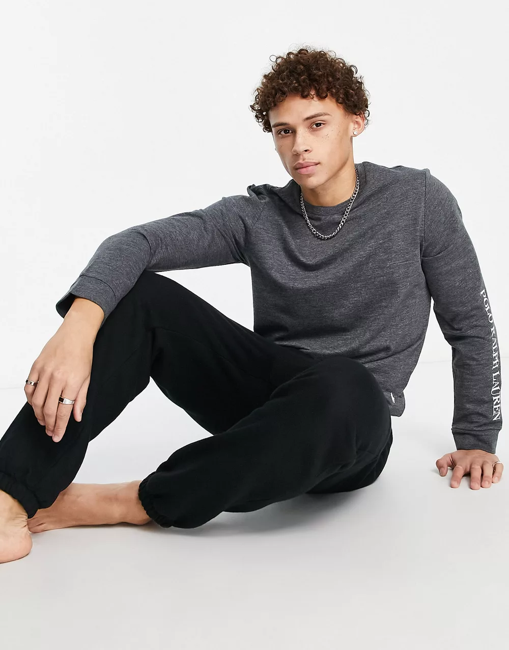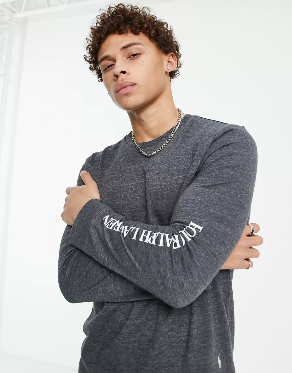 - Polo Ralph Lauren lounge long sleeve t-shirt with sleeve text logo