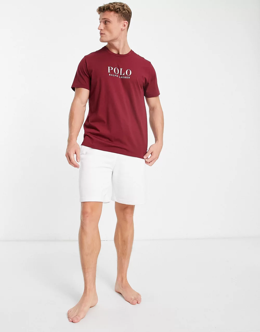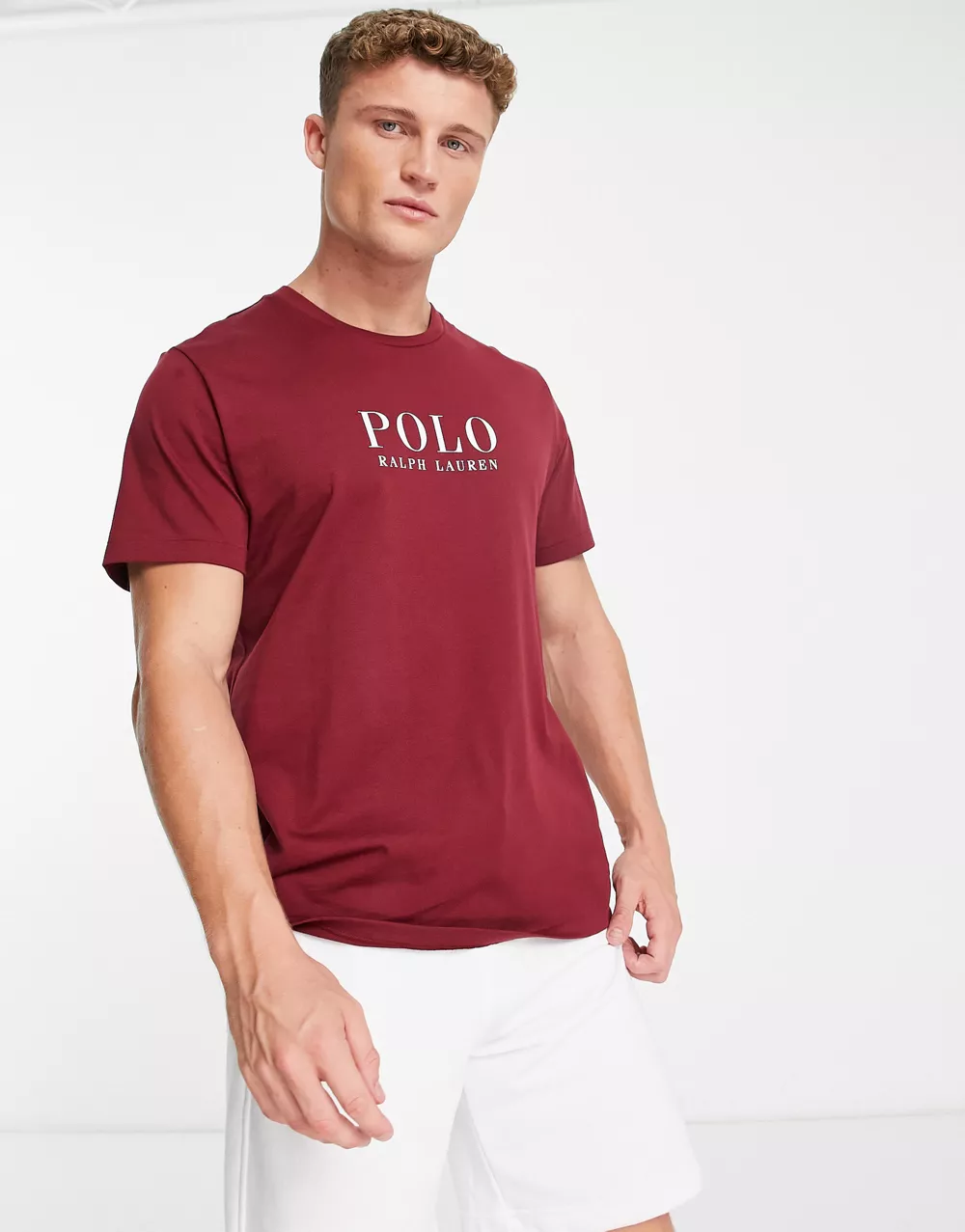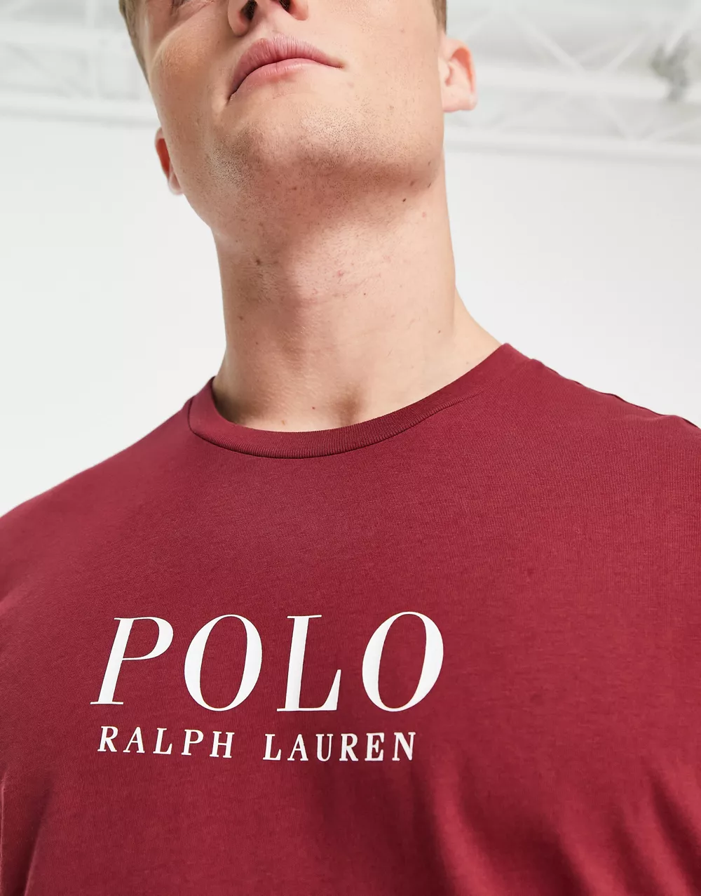 - Polo Ralph Lauren lounge t-shirt in burgundy with chest text logo