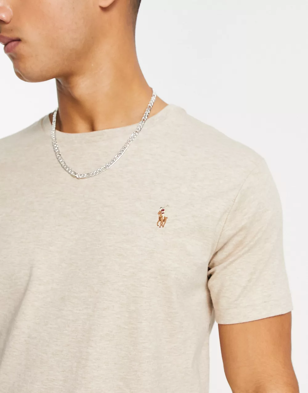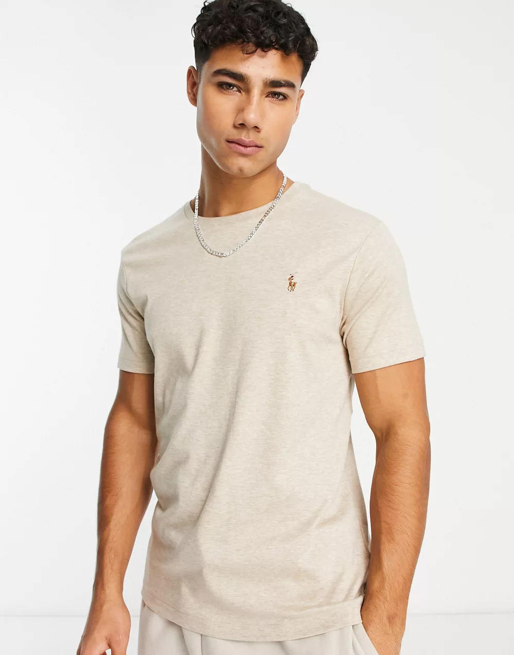 - Polo Ralph Lauren multi player logo pima cotton slim fit t-shirt in sand marl