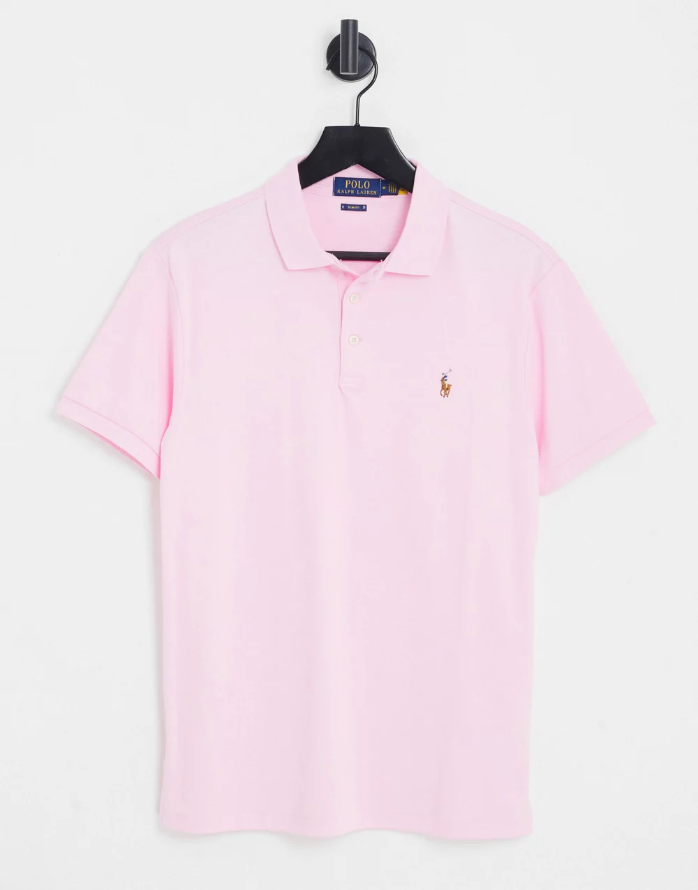 - Polo Ralph Lauren pima cotton polo slim fit with multi pony logo in pink