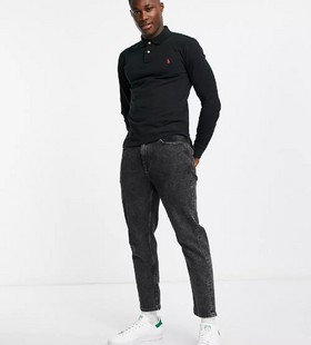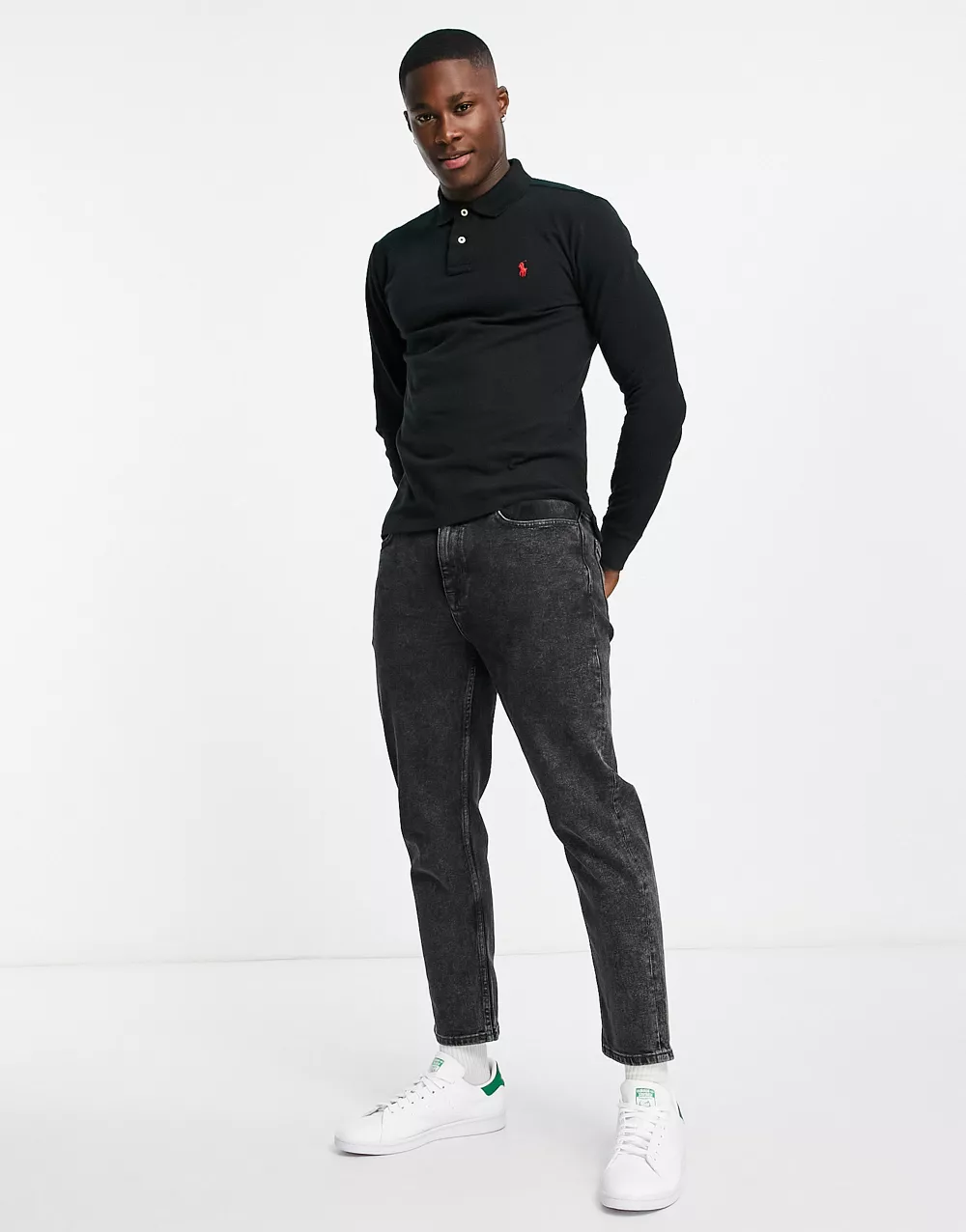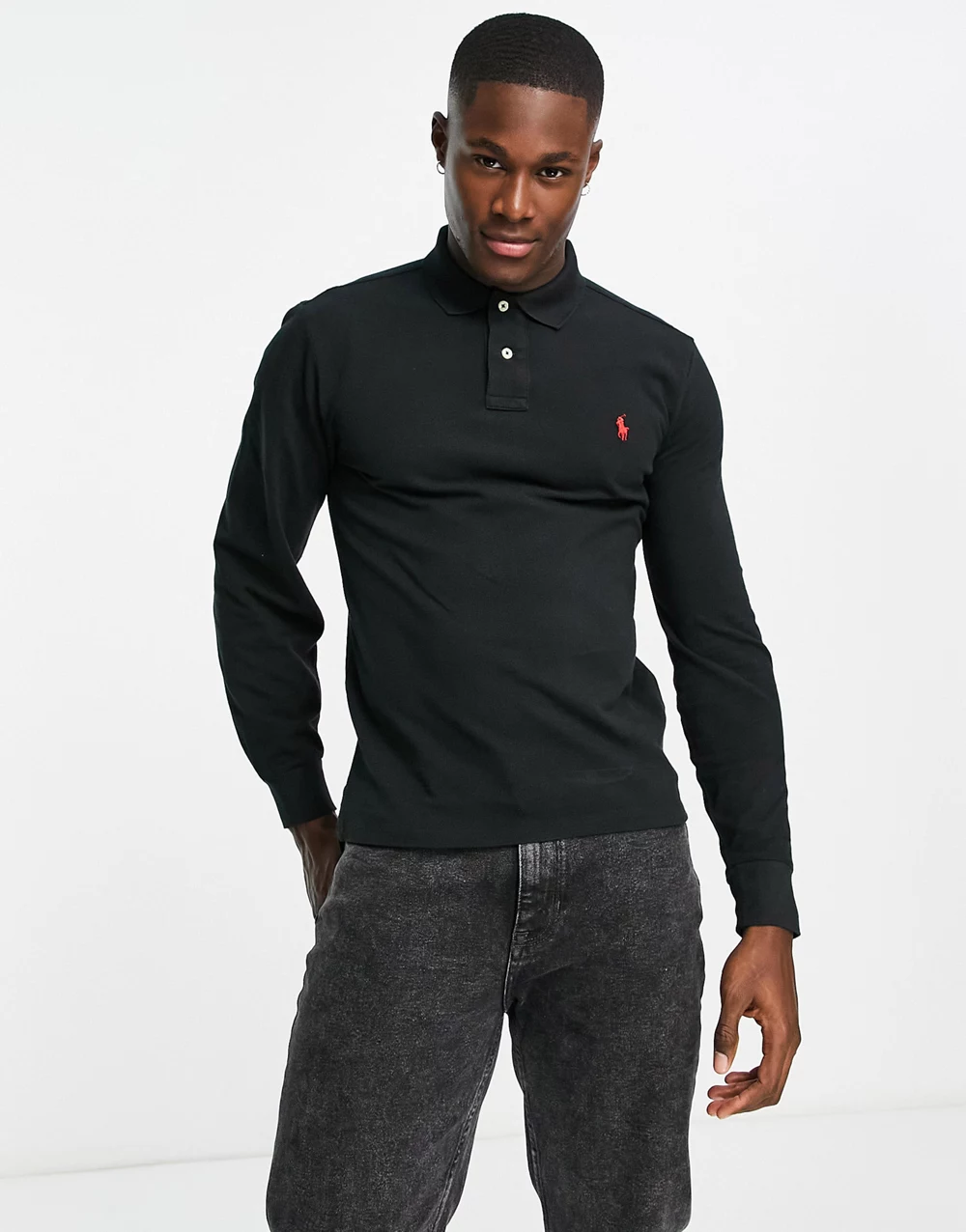 - Polo Ralph Lauren slim fit long sleeve polo in black with player logo
