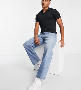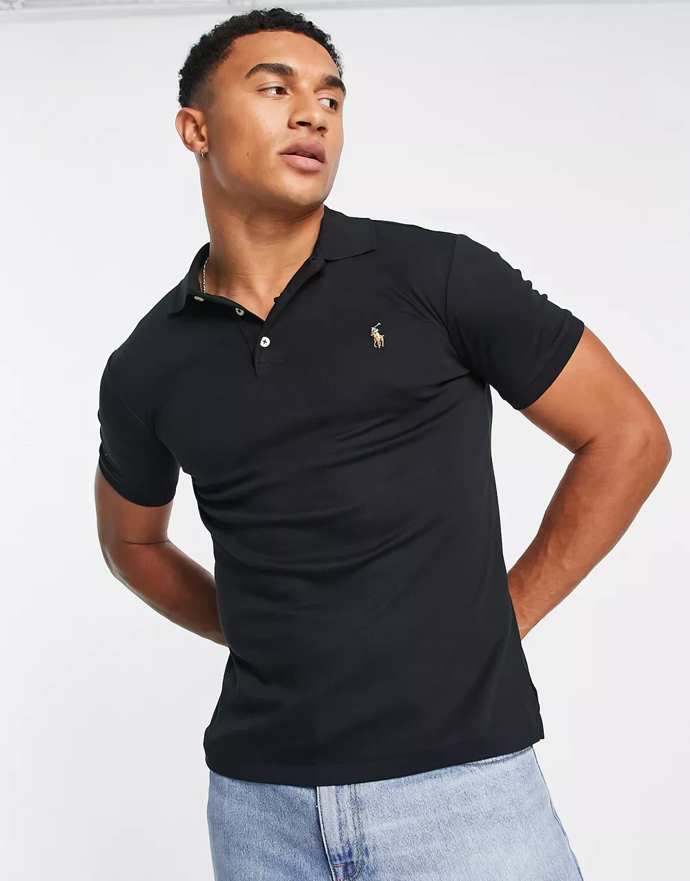 - Polo Ralph Lauren slim fit pima polo multi player logo in black