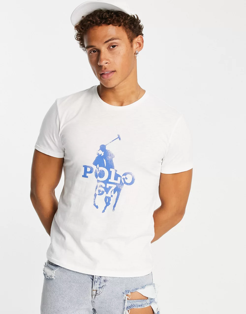 - Polo Ralph Lauren t-shirt with large player logo print in white