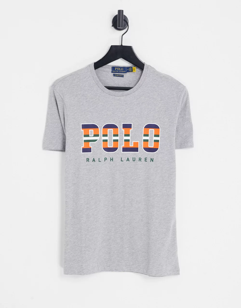 - Polo Ralph Lauren t-shirt with stripe applique logo in grey marl
