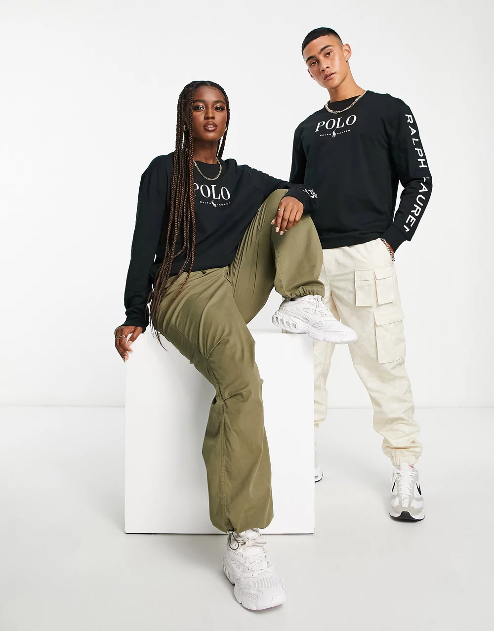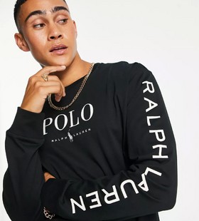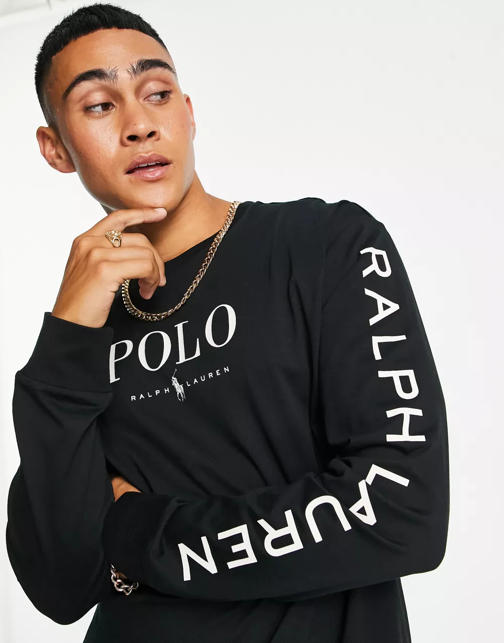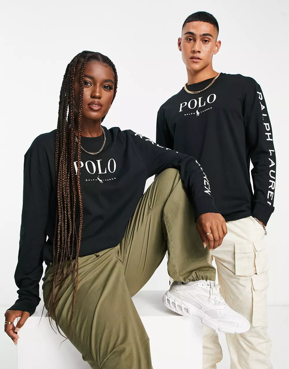 - Polo Ralph Lauren x ASOS exclusive collab long sleeve t-shirt in black with text logo