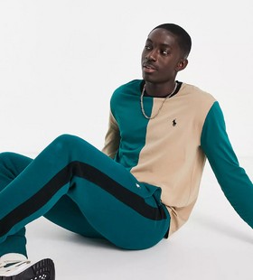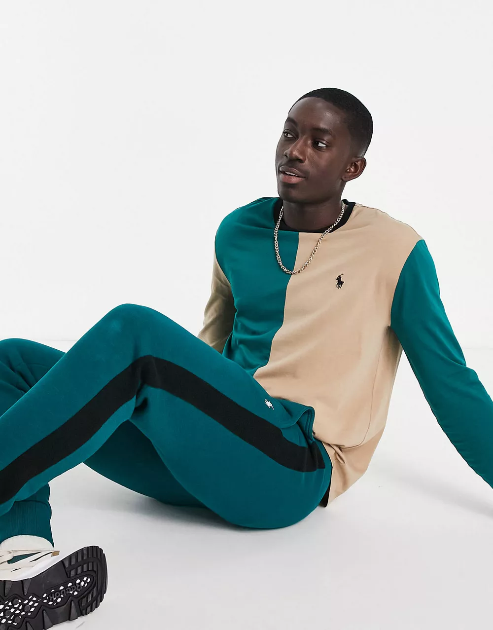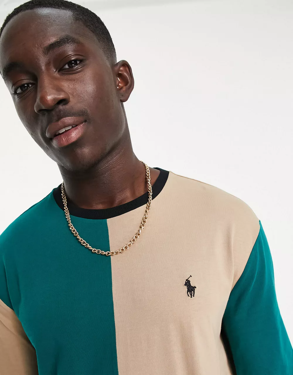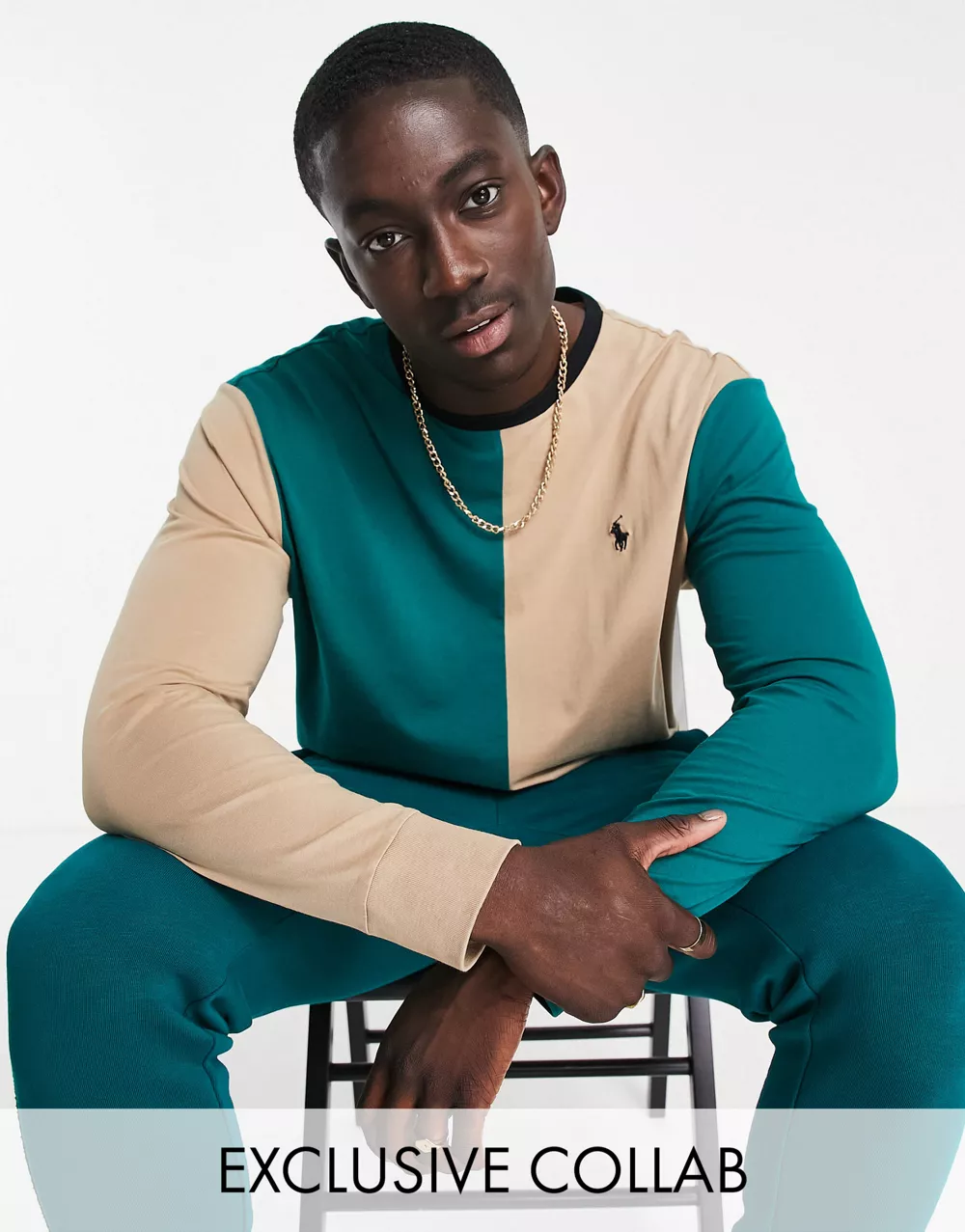 - Polo Ralph Lauren x ASOS exclusive collab long sleeve t-shirt in colour block green/tan and pony logo