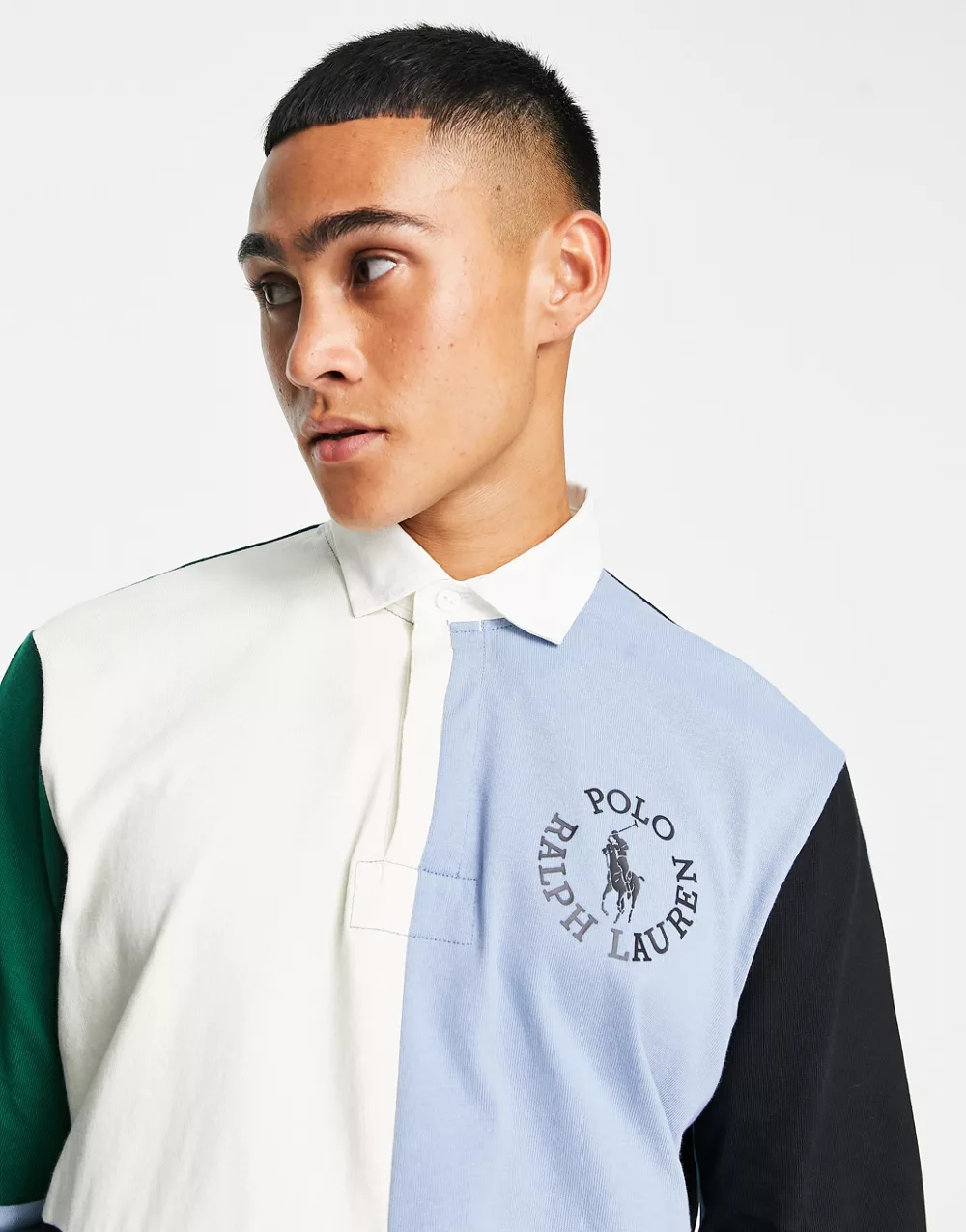 - Polo Ralph Lauren x ASOS exclusive collab rugby polo shirt in blue colour block