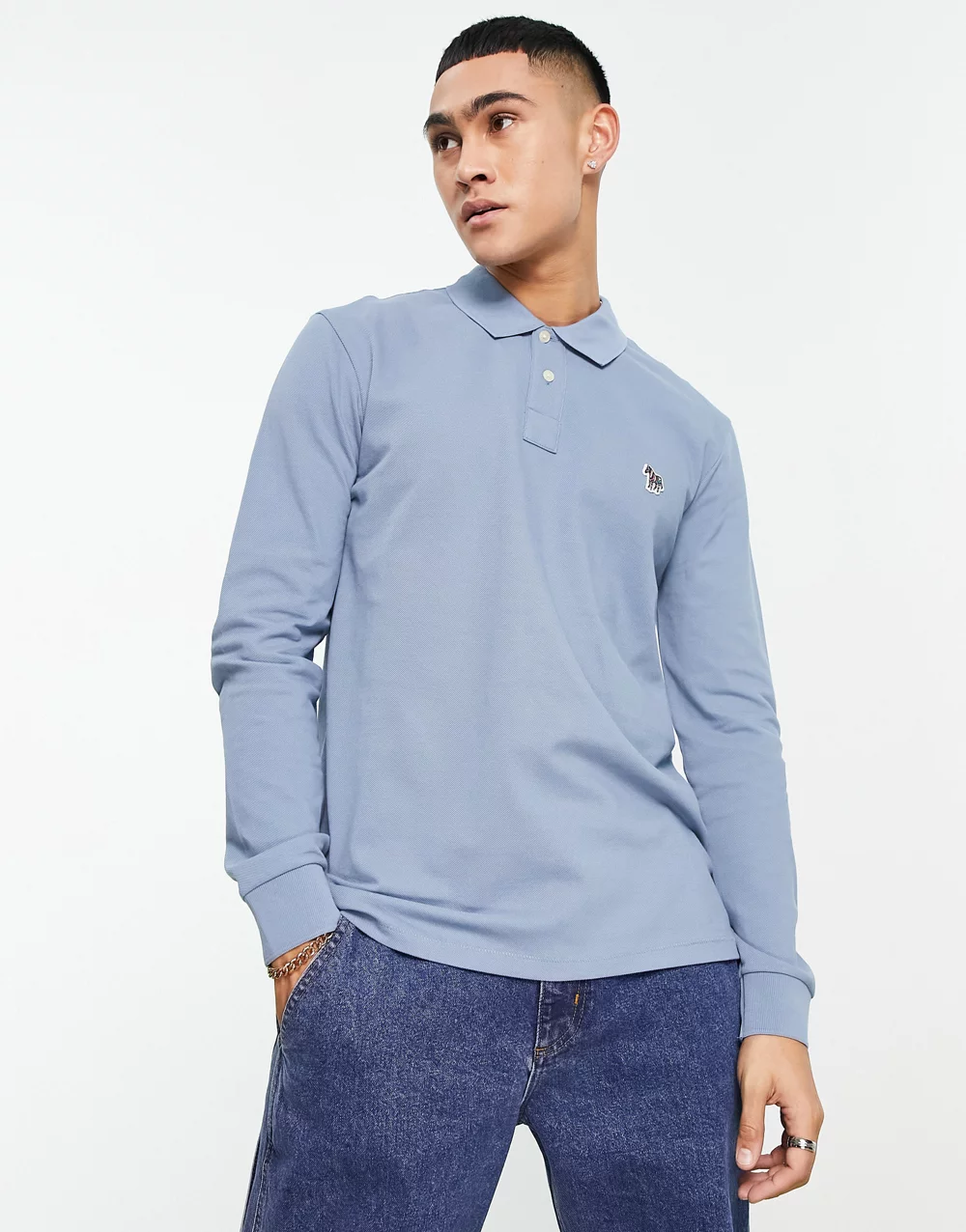 - PS Paul Smith regular fit logo long sleeve polo in pale blue 2978198542-50