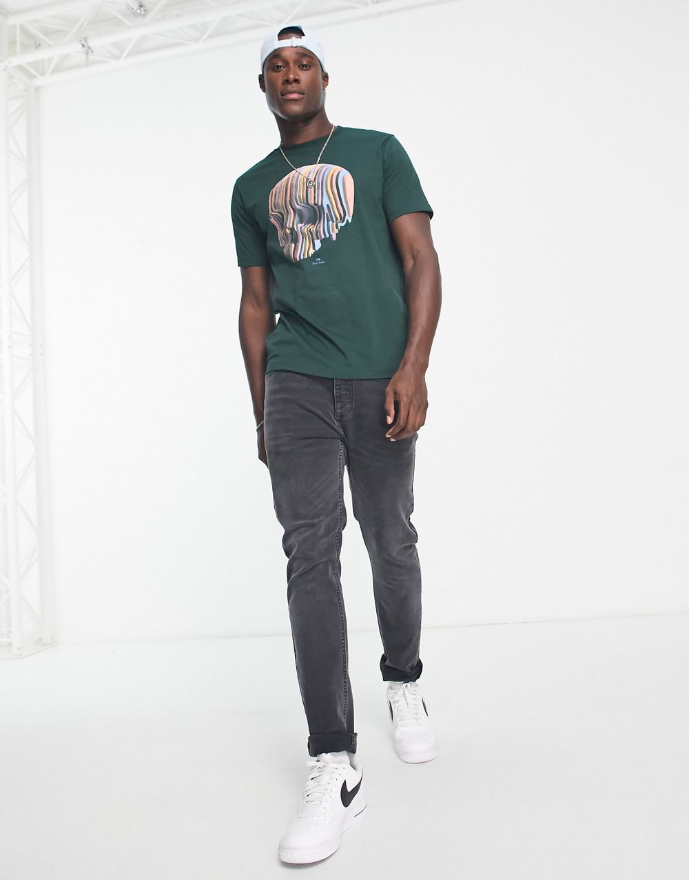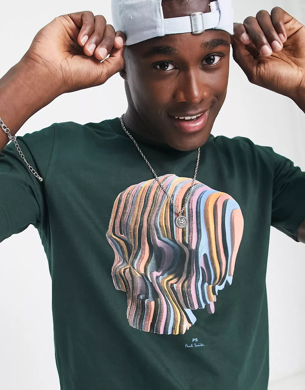 - PS Paul Smith t-shirt with multi colour skull graphics in dark green
