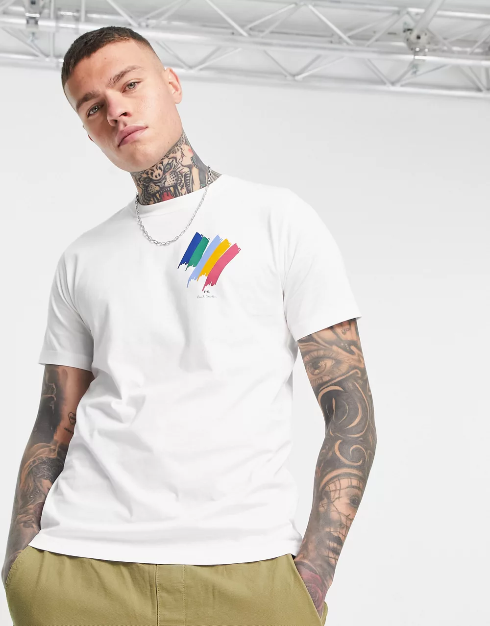 - PS Paul Smith t-shirt with stripe back print in white Exclusive to ASOS
