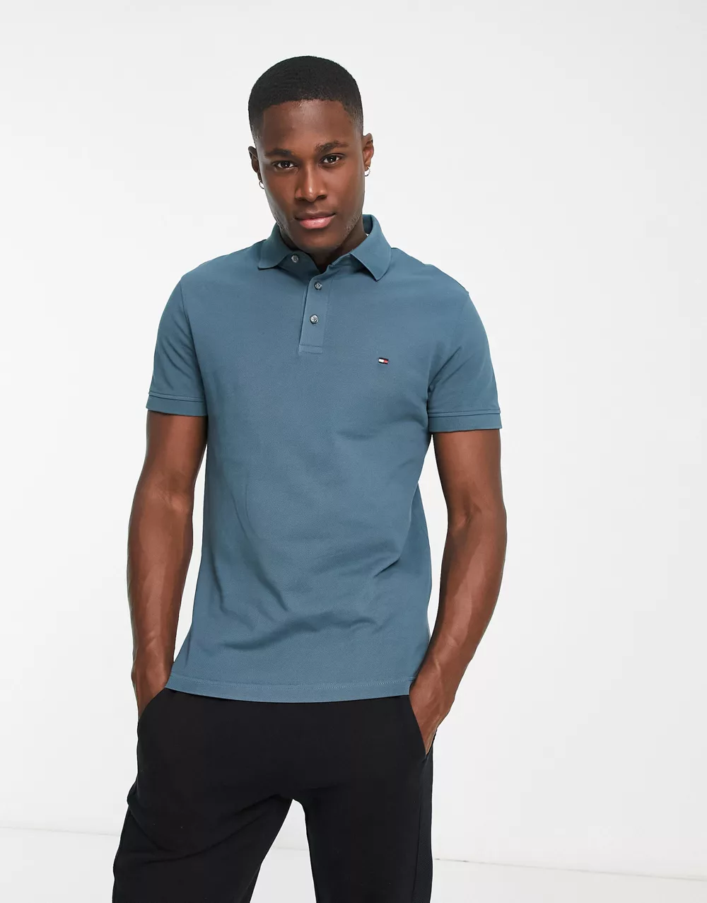 - Tommy Hilfiger 1985 icon logo slim fit pique polo in blue