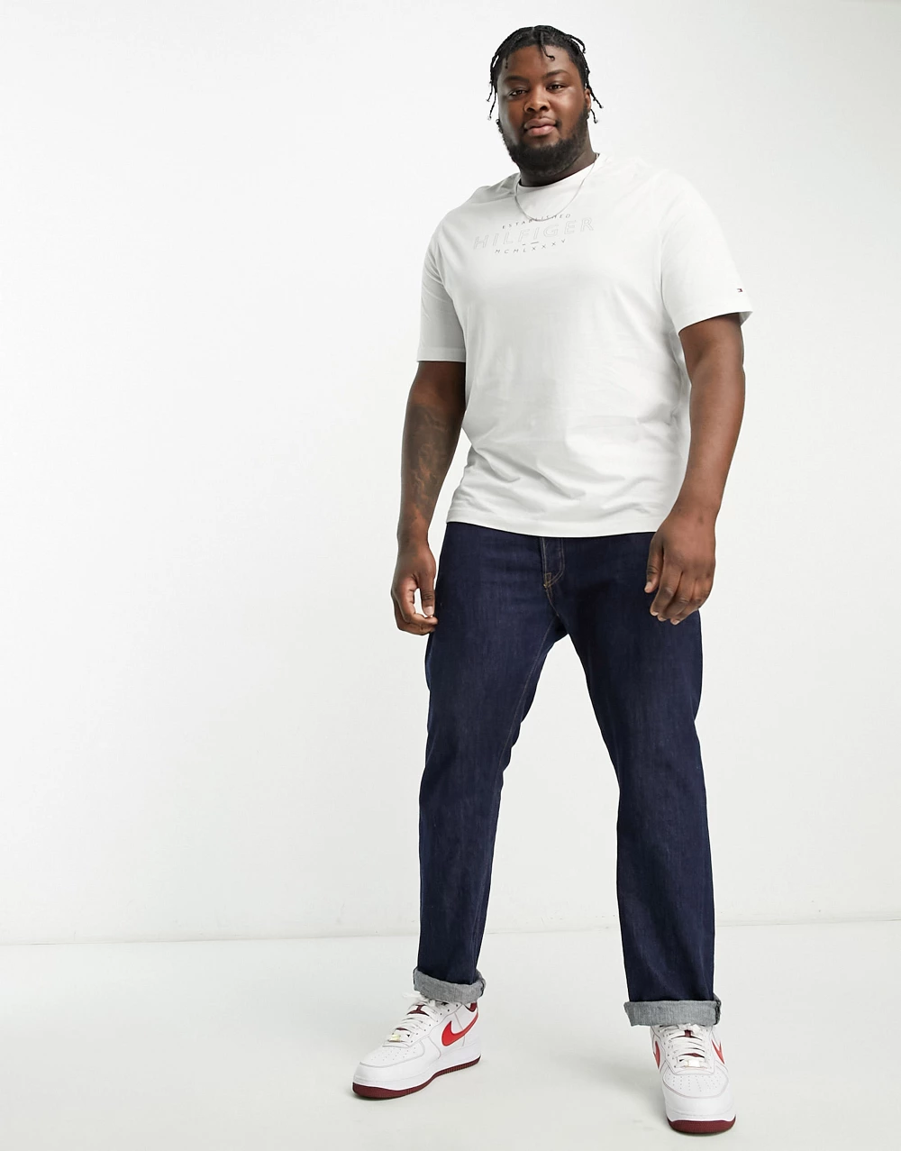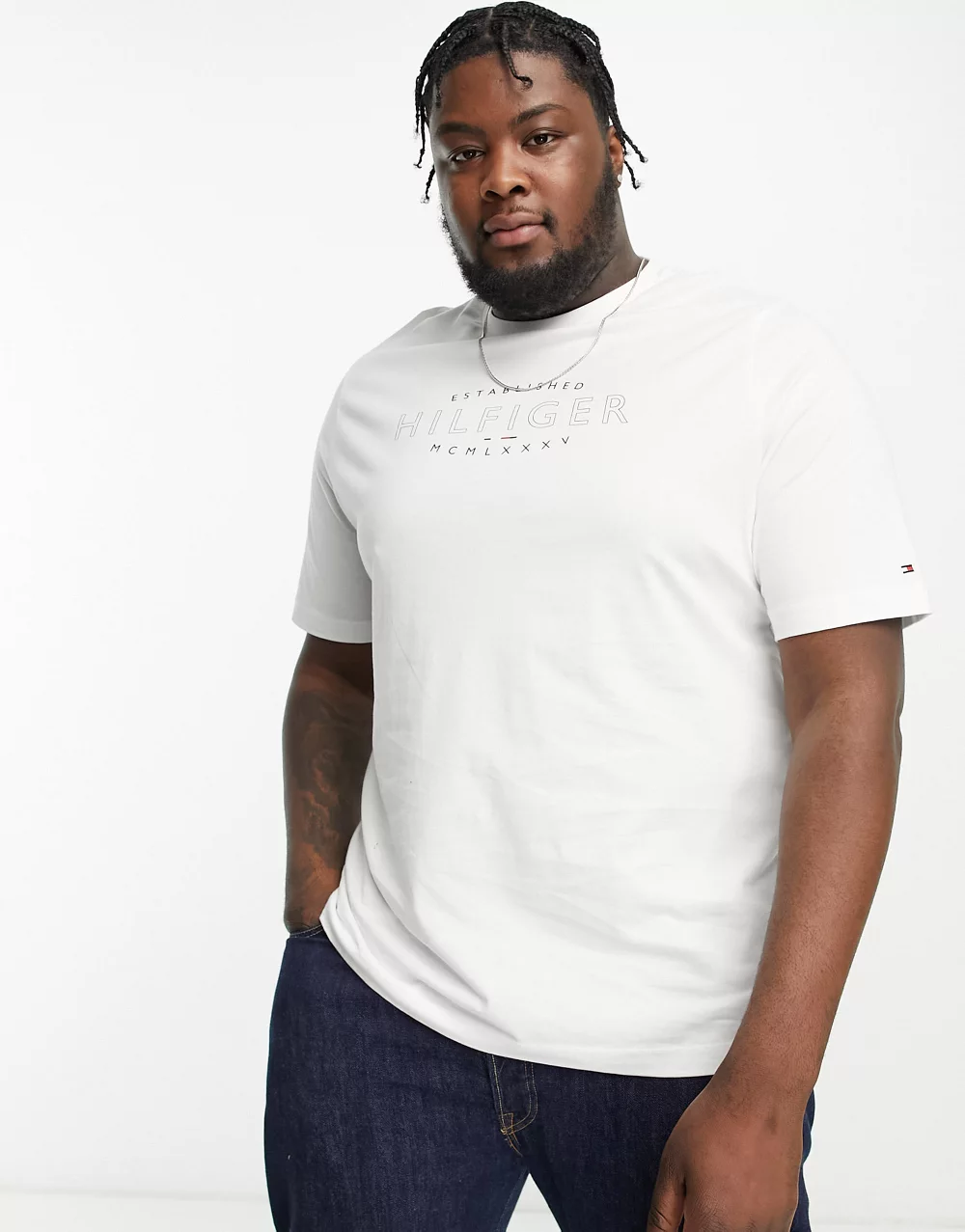 - Tommy Hilfiger Big & Tall centre curve logo t-shirt in white