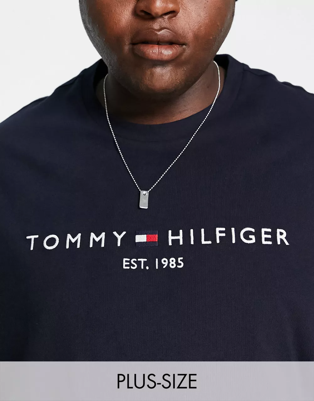 - Tommy Hilfiger Big & Tall embroidered logo t-shirt in navy