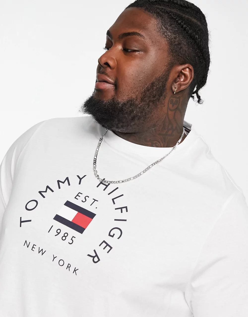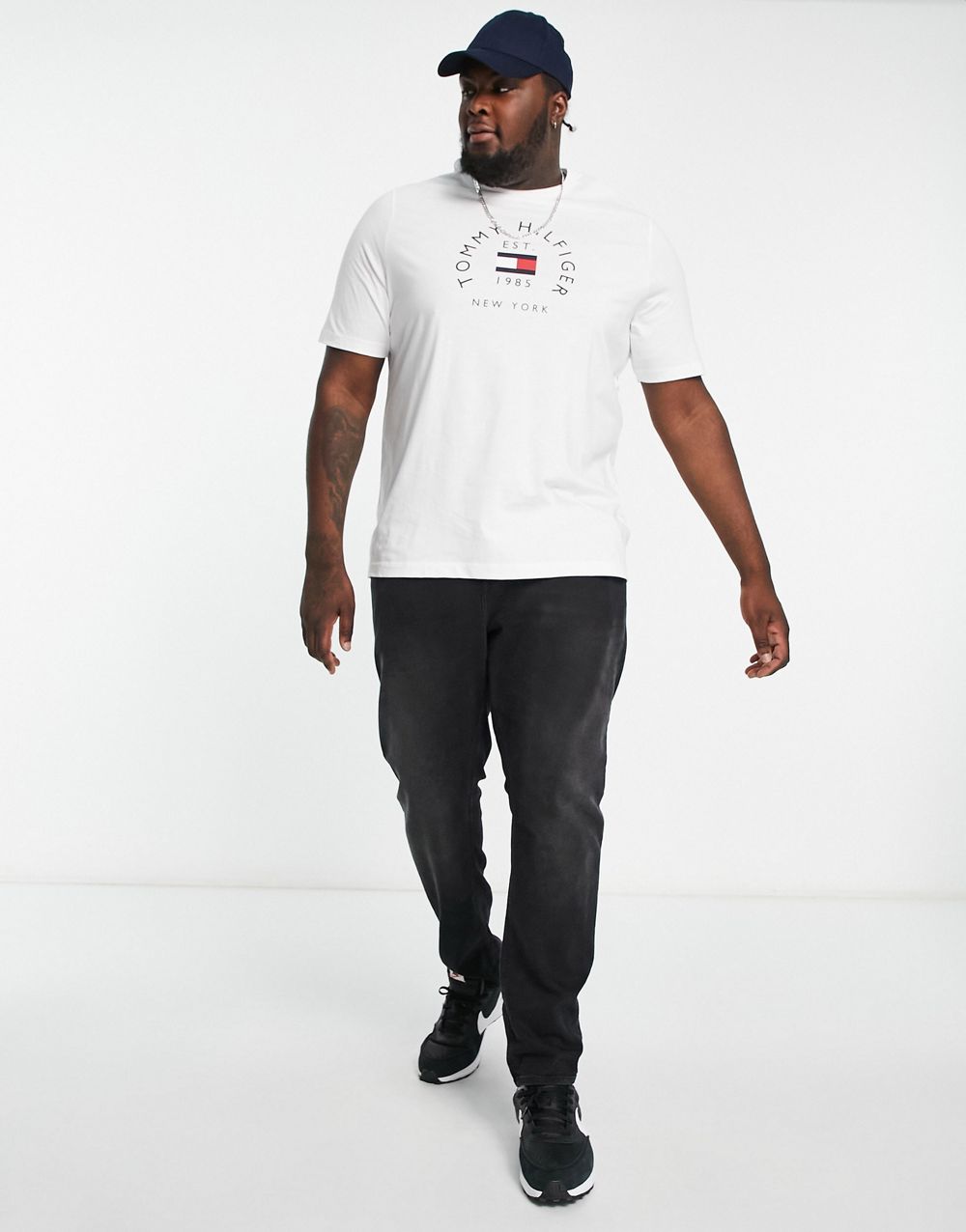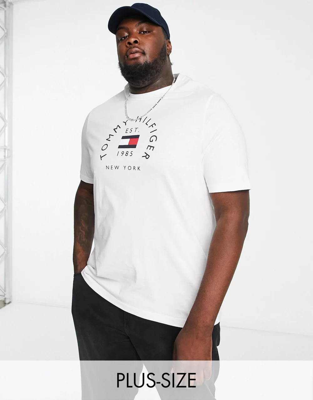 - Tommy Hilfiger Big & Tall flag arch logo cotton t-shirt in white 2510910198-50