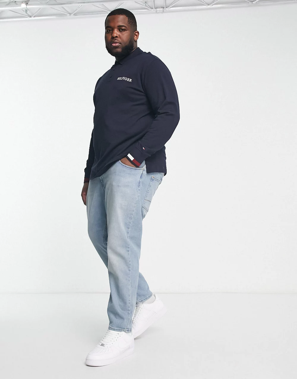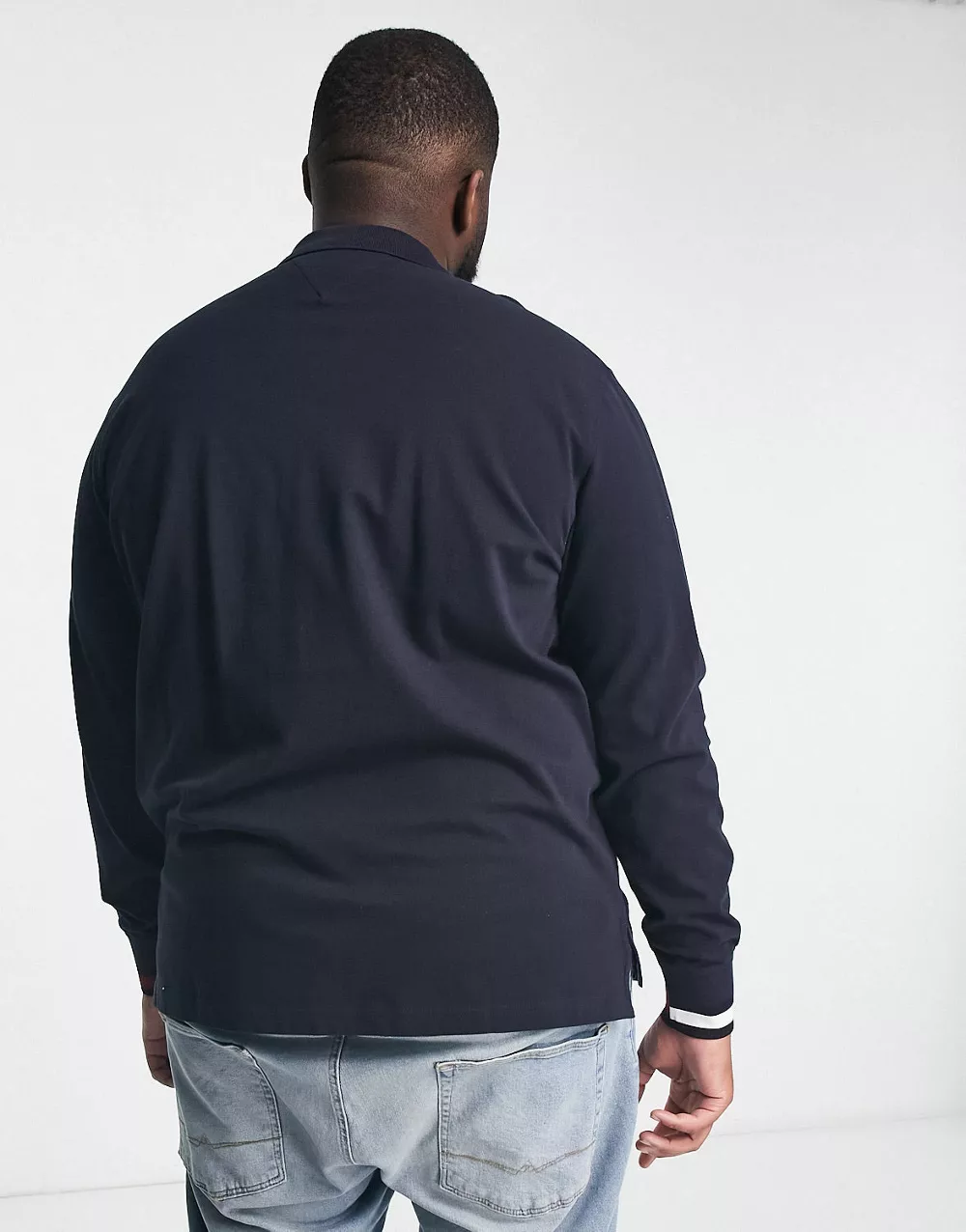 - Tommy Hilfiger Big & Tall flag cuff long sleeve polo shirt in black
