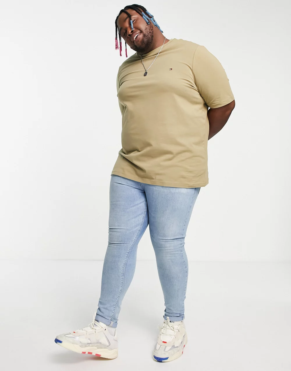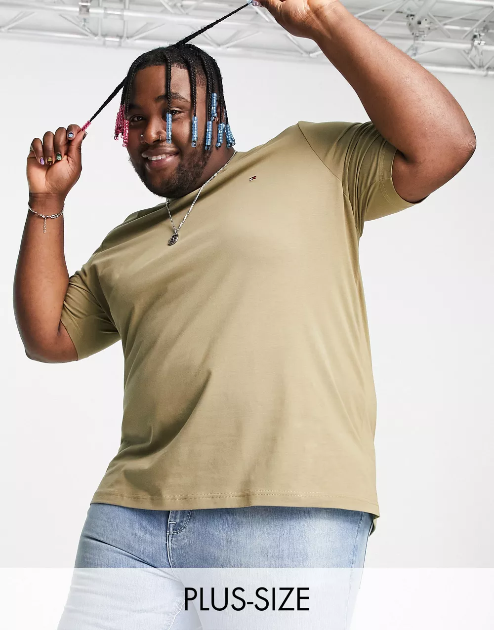 - Tommy Hilfiger Big & Tall icon logo slim fit t-shirt in tan