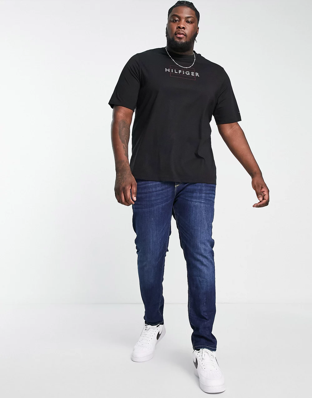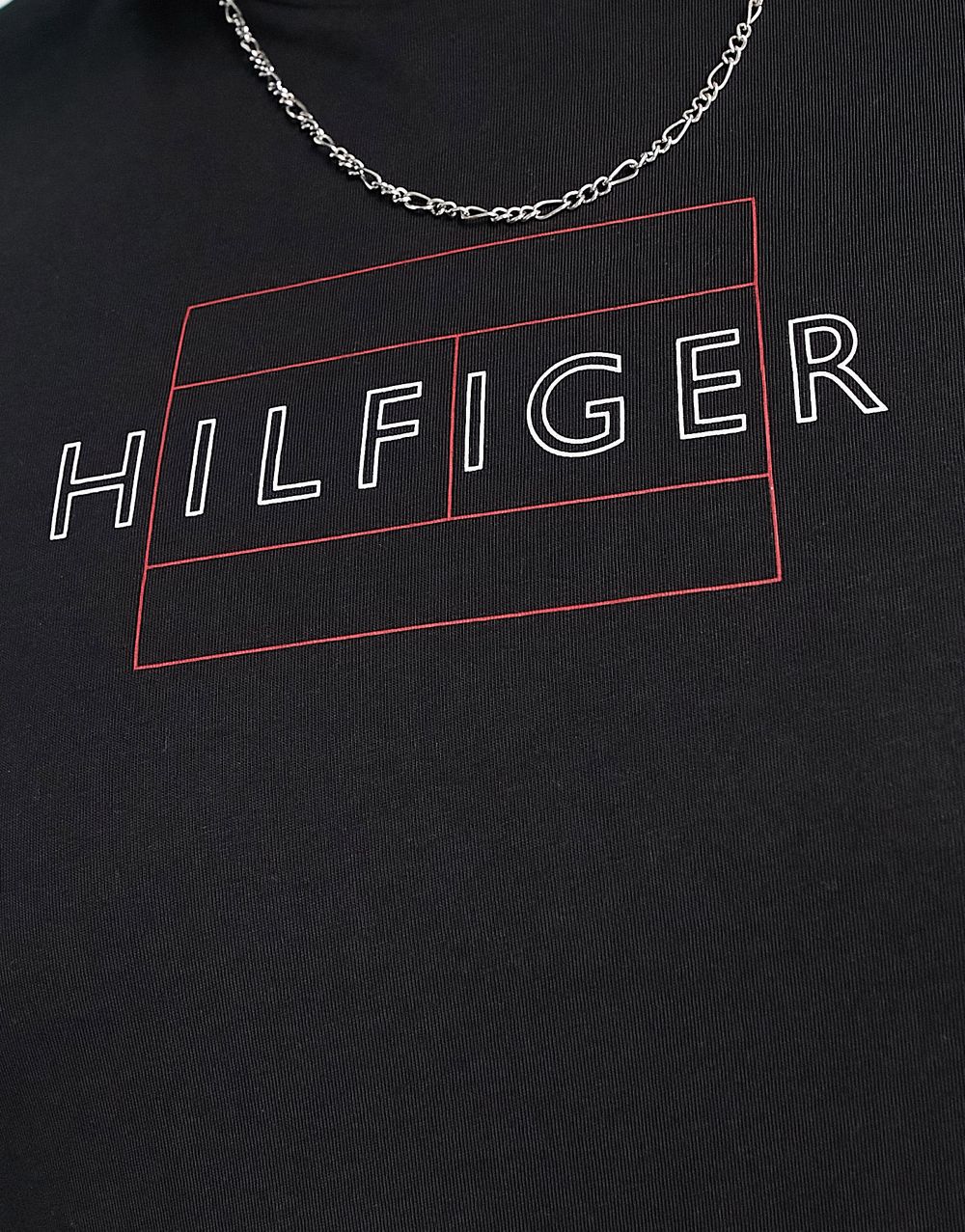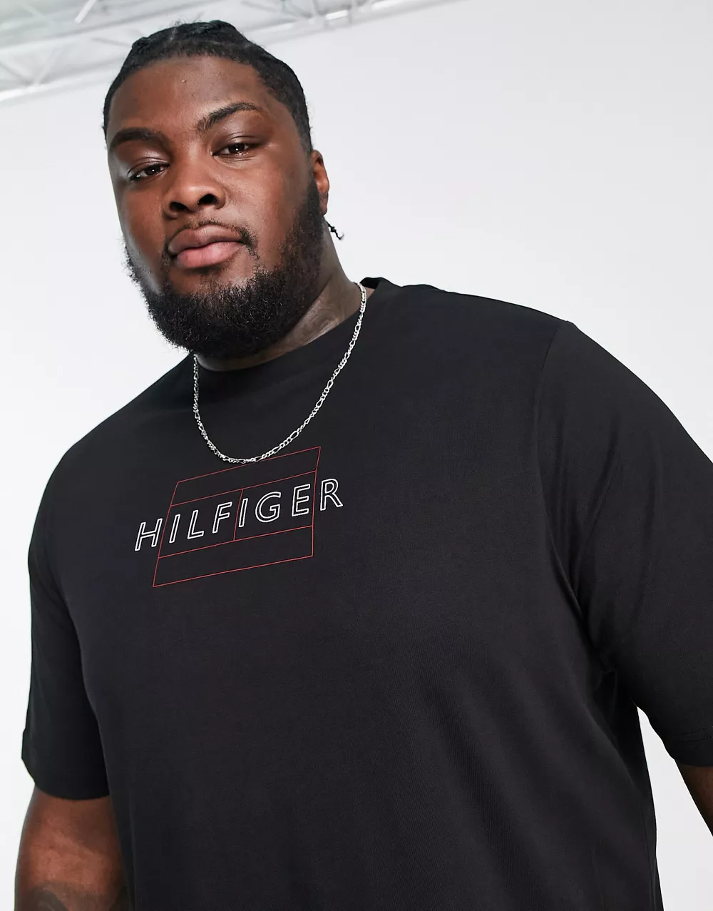 - Tommy Hilfiger Big & Tall linear flag logo t-shirt in black