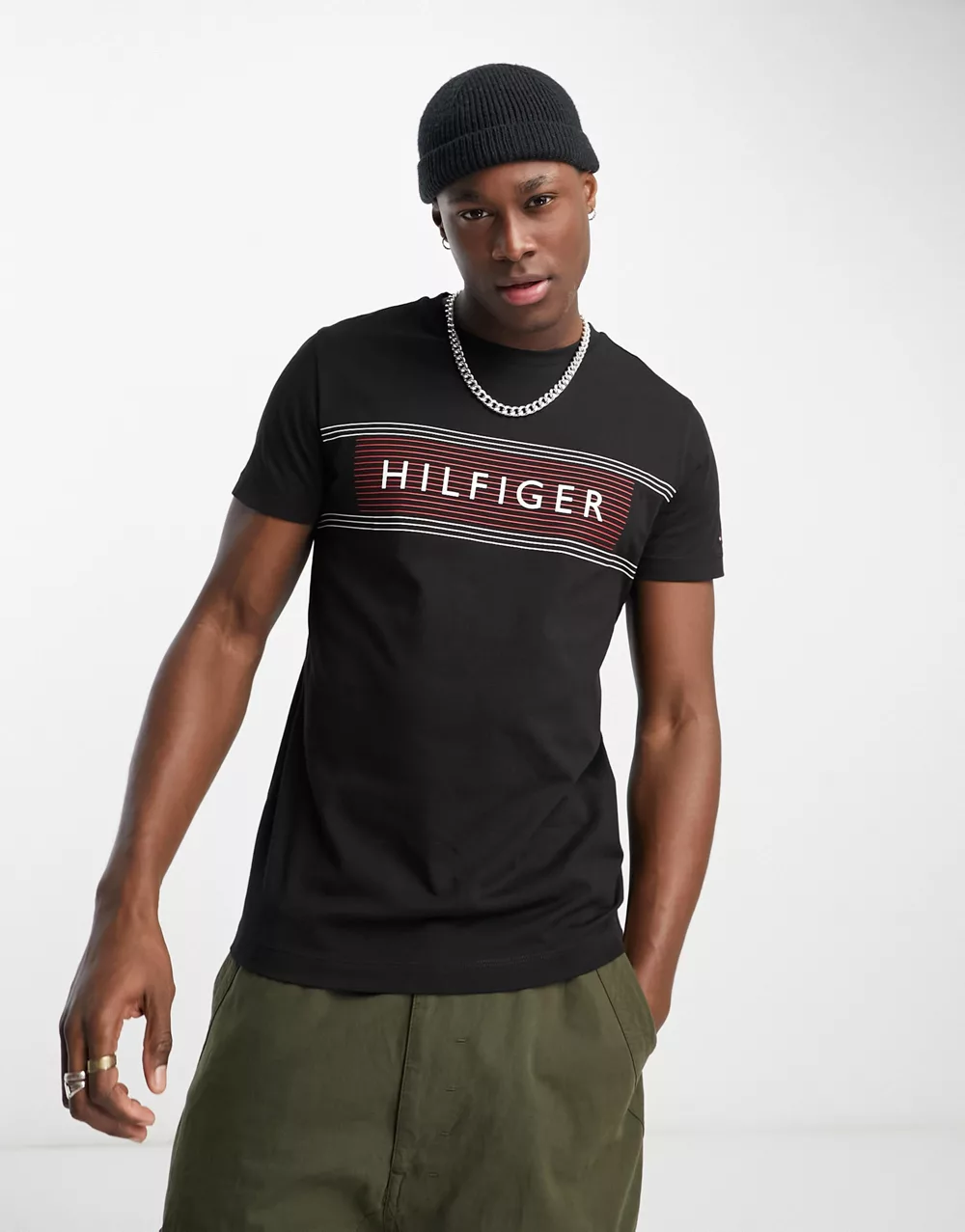 - Tommy Hilfiger chest corp stripe logo t-shirt in black