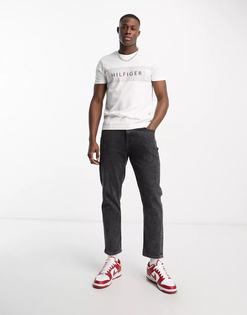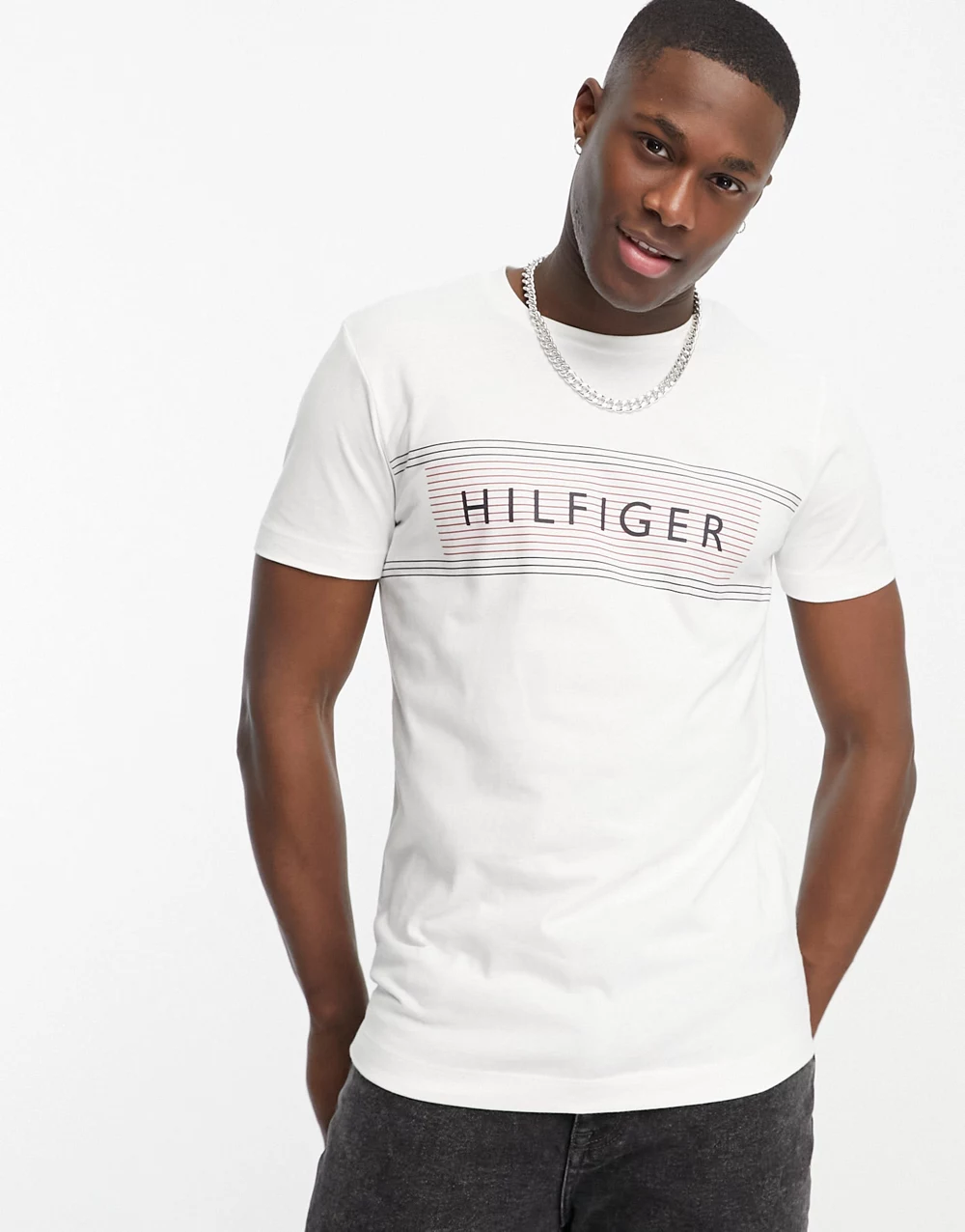 - Tommy Hilfiger chest corp stripe logo t-shirt in white