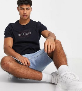 - Tommy Hilfiger cotton linear flag logo t-shirt in navy - NAVY