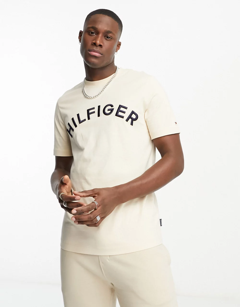 - Tommy Hilfiger curve logo t-shirt in beige 2032139745-50