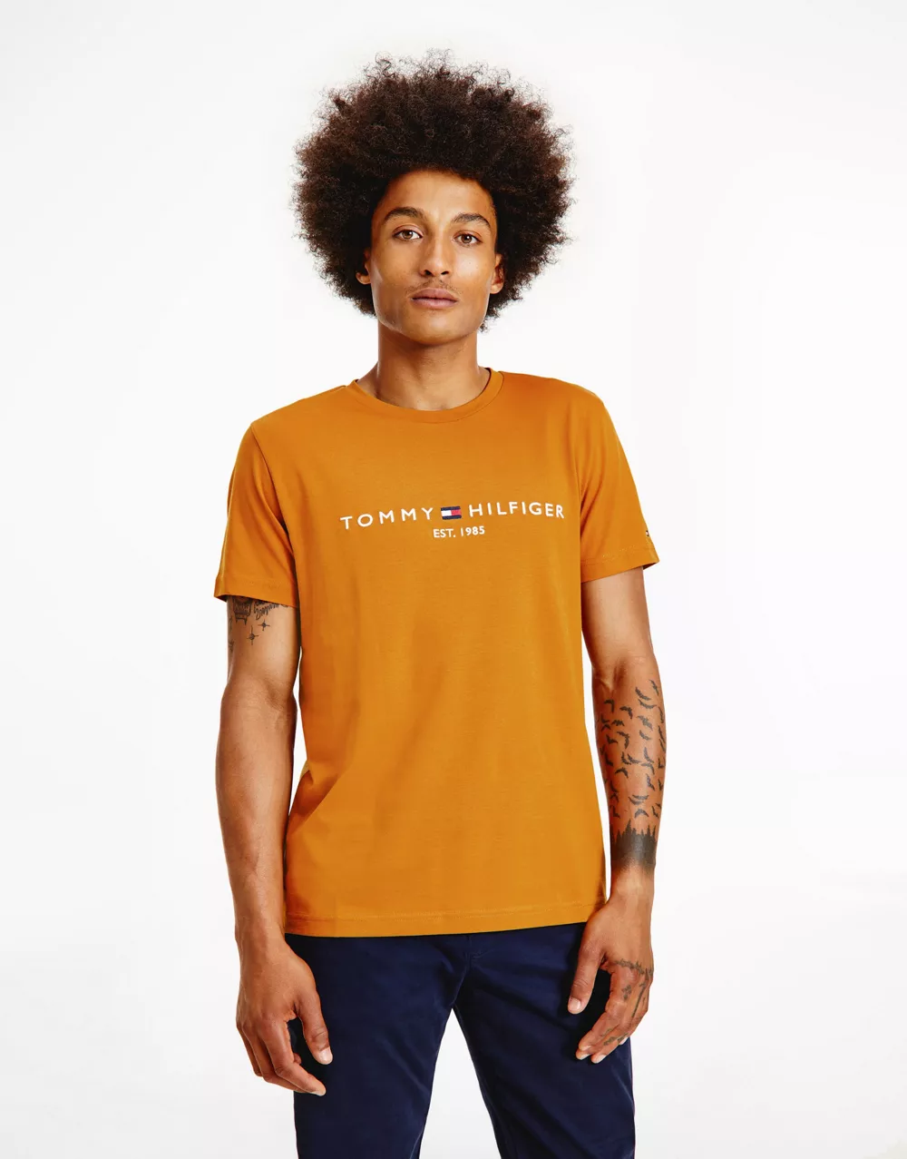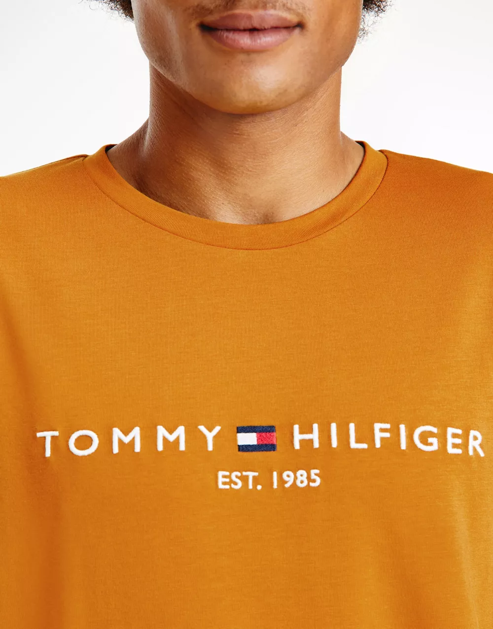 - Tommy Hilfiger embroidered flag logo t-shirt in gold
