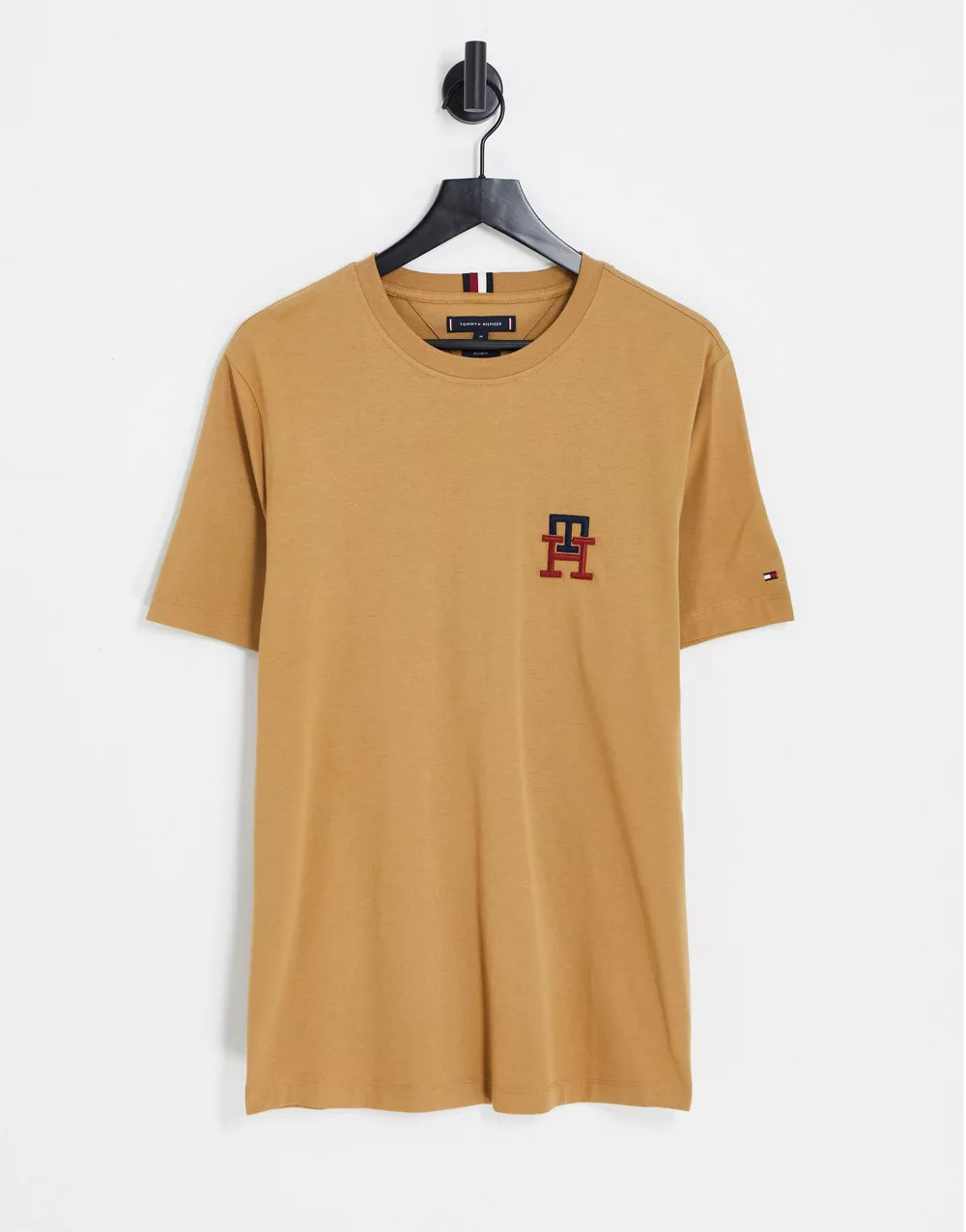 - Tommy Hilfiger essential monogram logo t-shirt in khaki beige