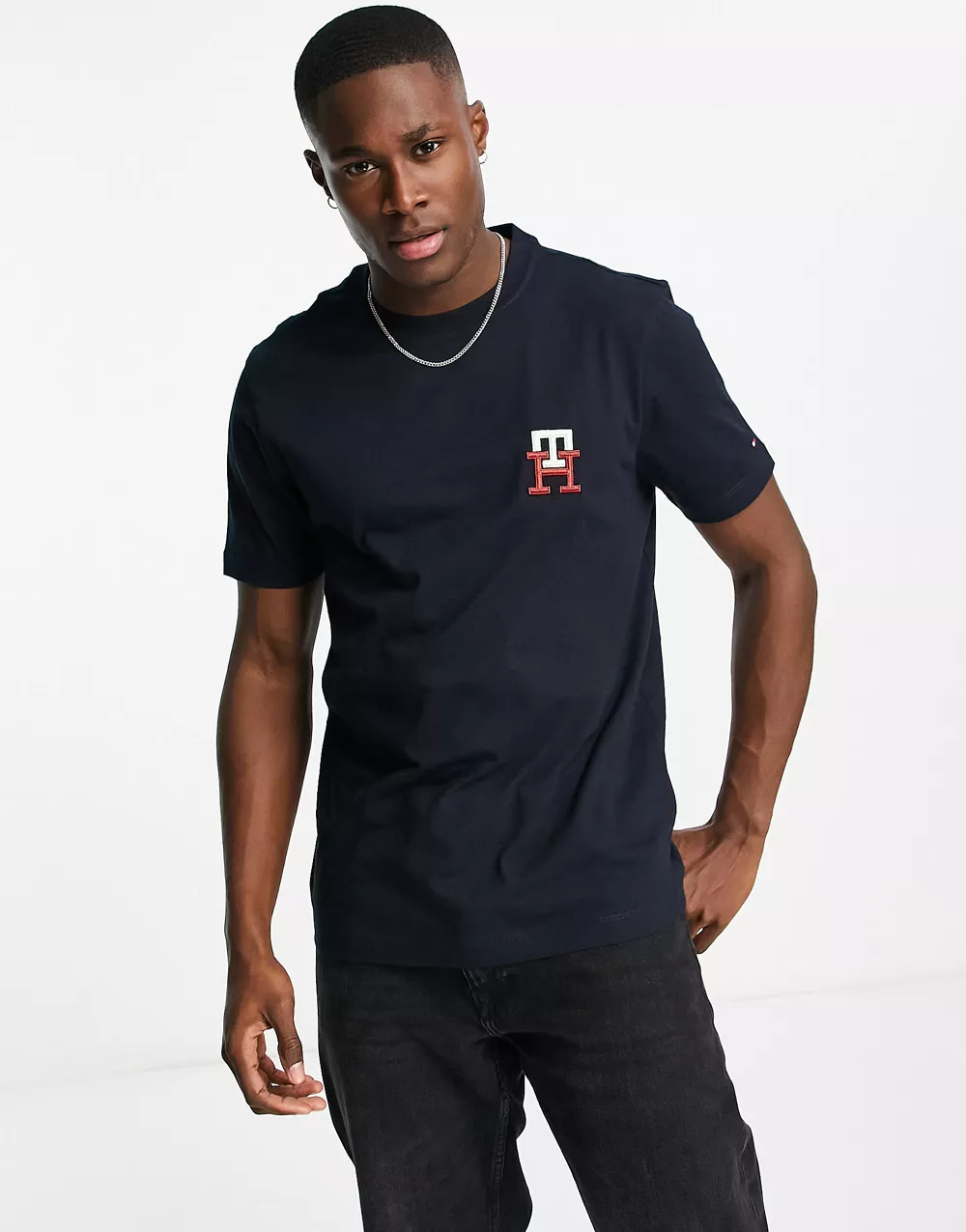 - Tommy Hilfiger essential monogram logo t-shirt in navy