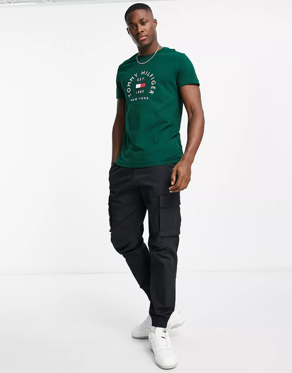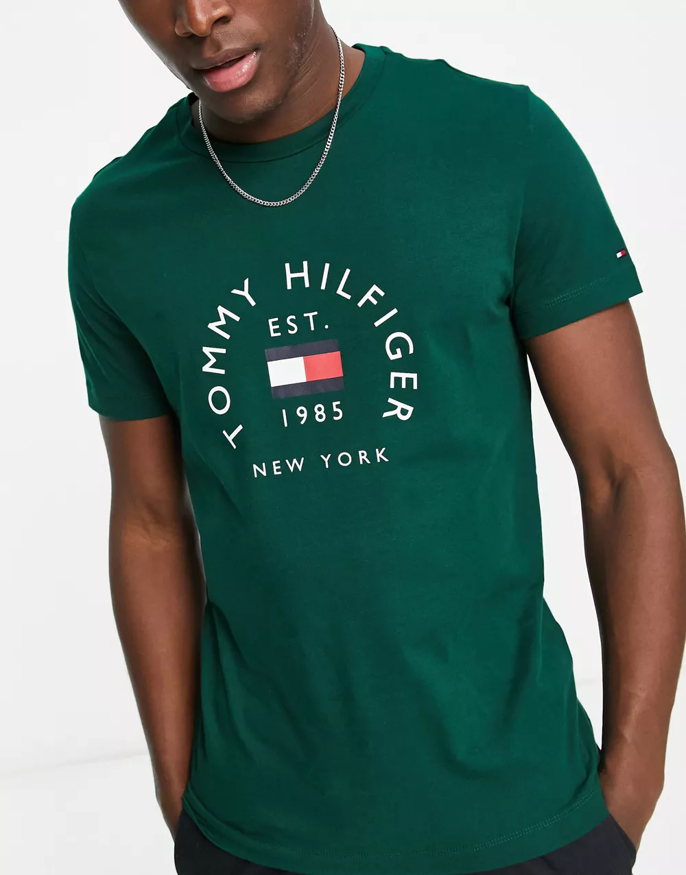 - Tommy Hilfiger flag arch logo cotton t-shirt in dark green