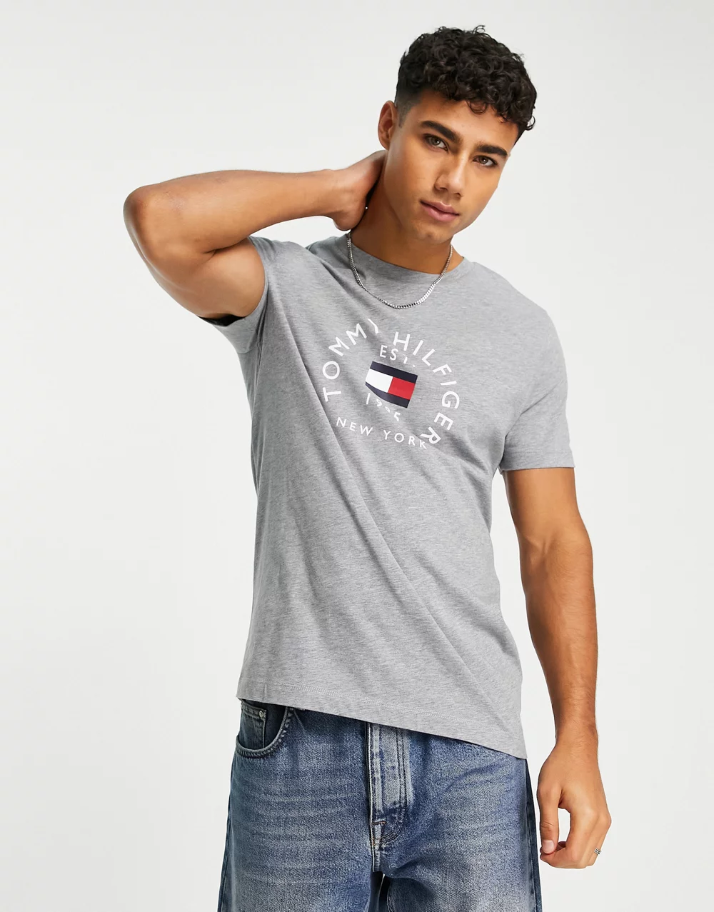 - Tommy Hilfiger flag arch logo cotton t-shirt in dark grey