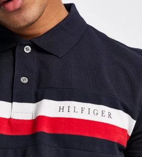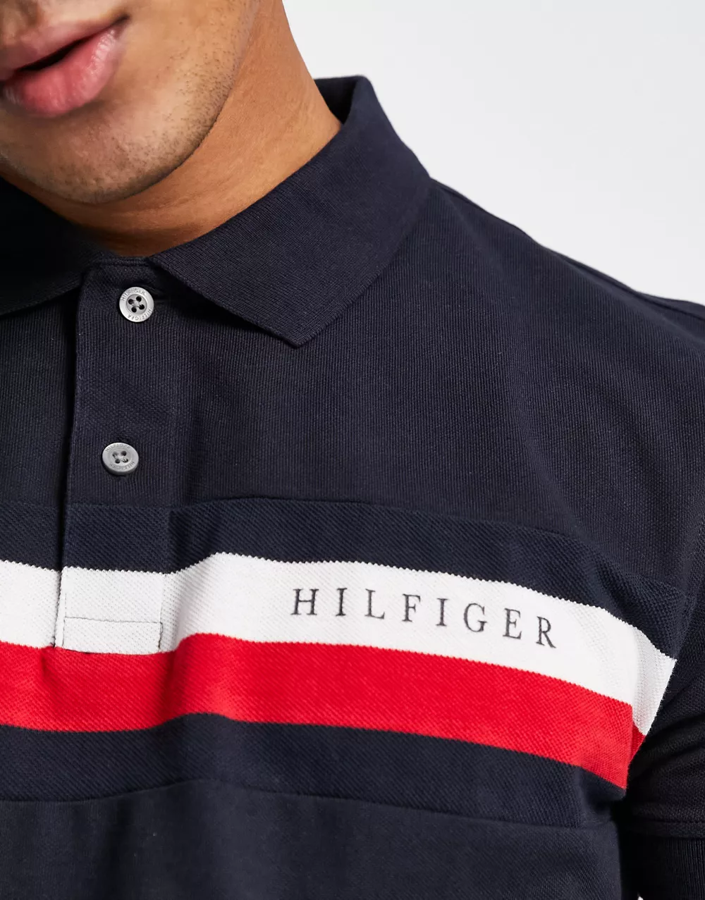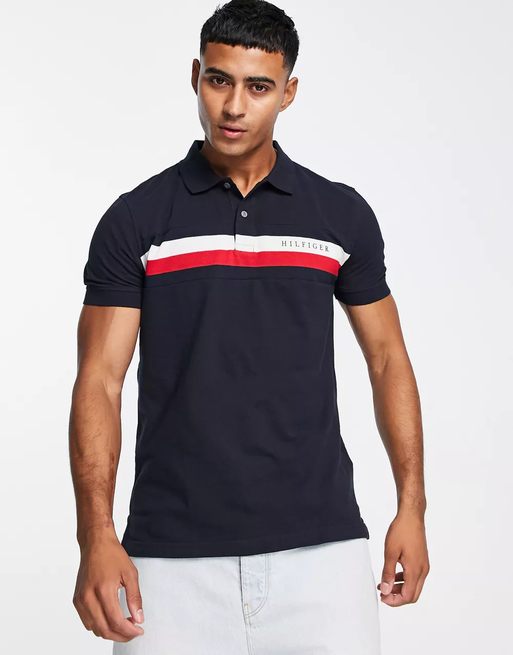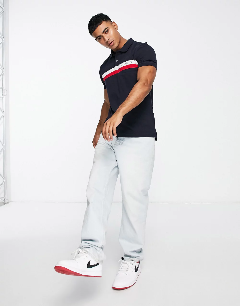 - Tommy Hilfiger icon chest stripe pique polo regular fit in navy