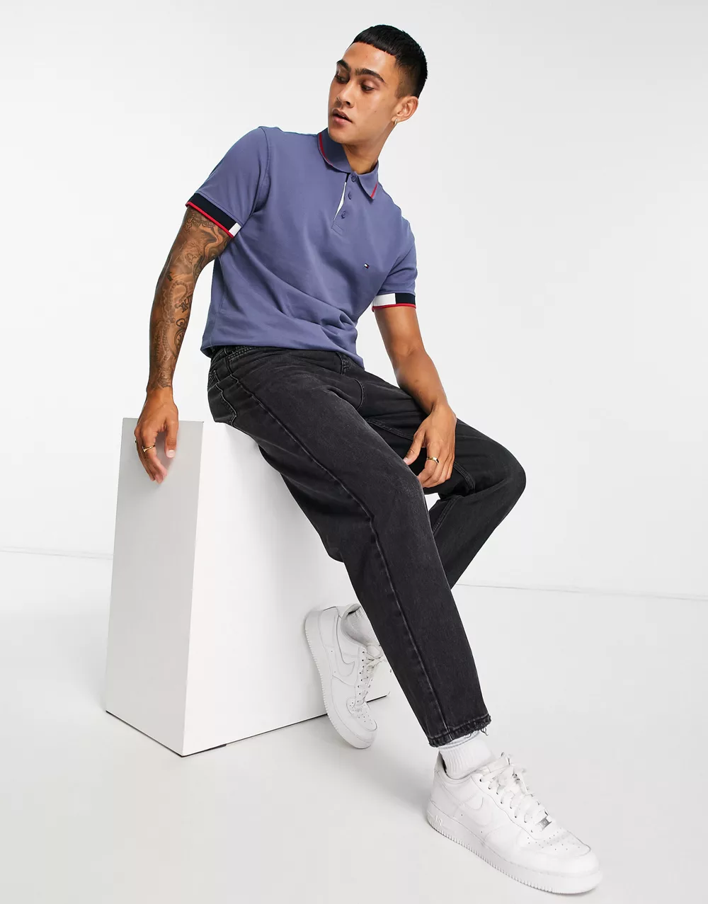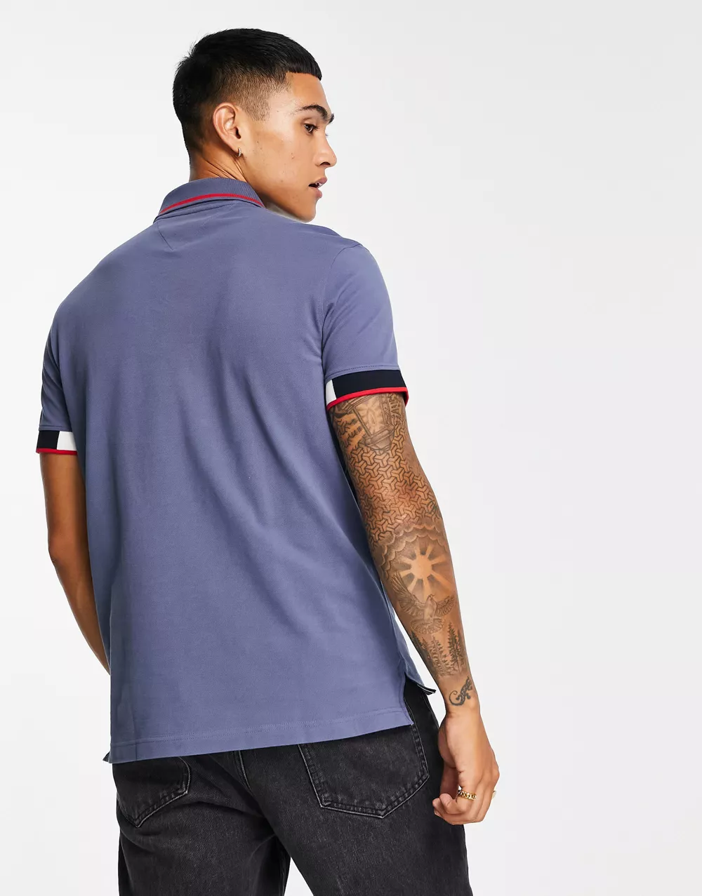 - Tommy Hilfiger icon flag placket and cuff slim fit polo in dark blue