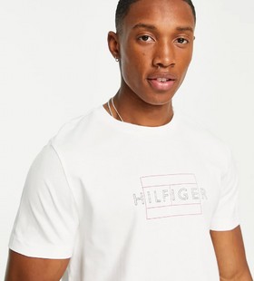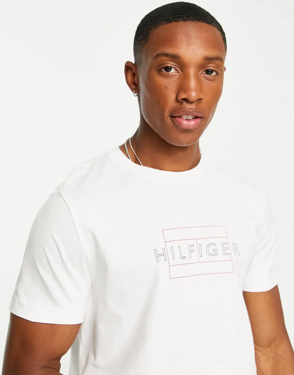 - Tommy Hilfiger linear flag logo t-shirt in white