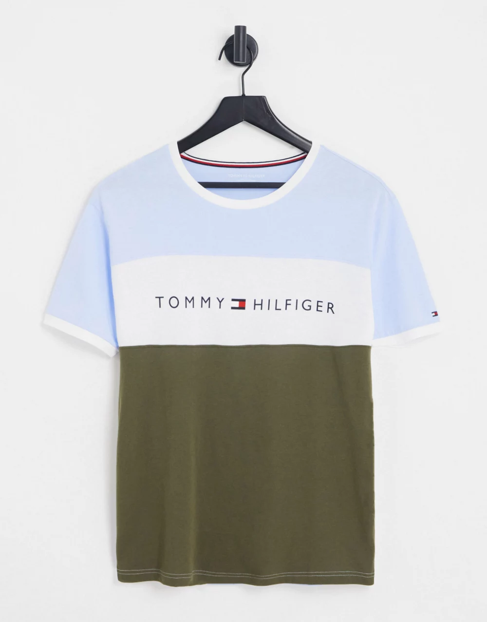 - Tommy Hilfiger loungewear colour block t-shirt in khaki and blue