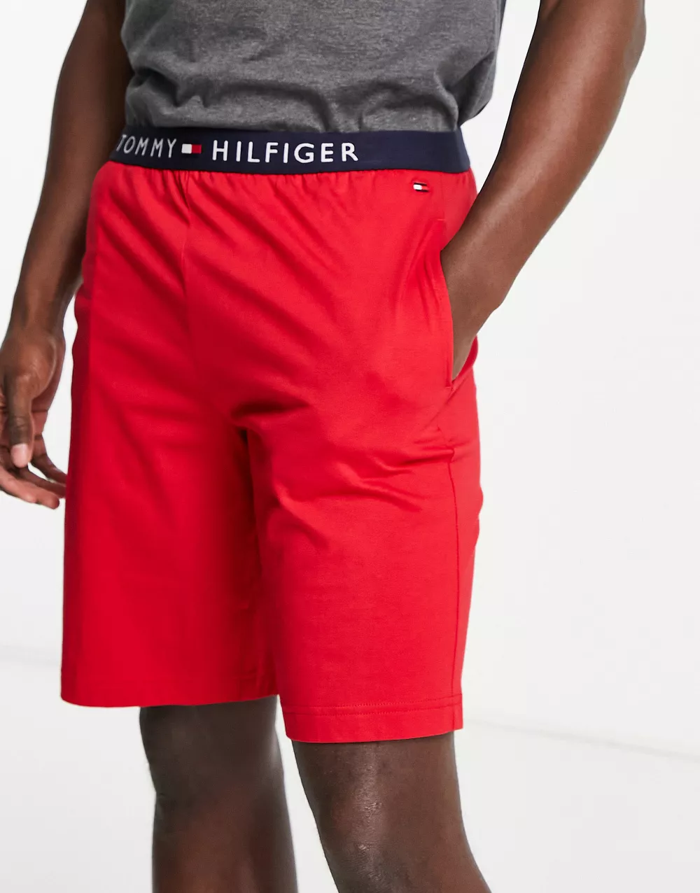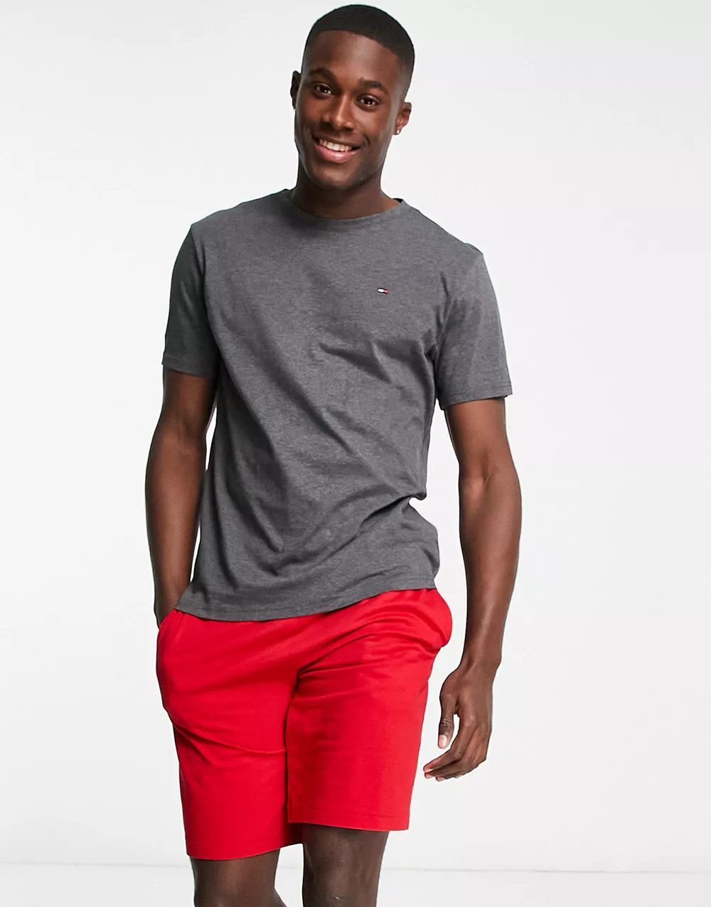 - Tommy Hilfiger loungewear t-shirt and shorts set in dark grey and red