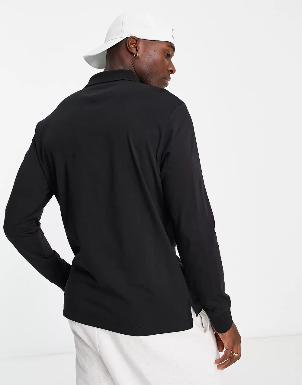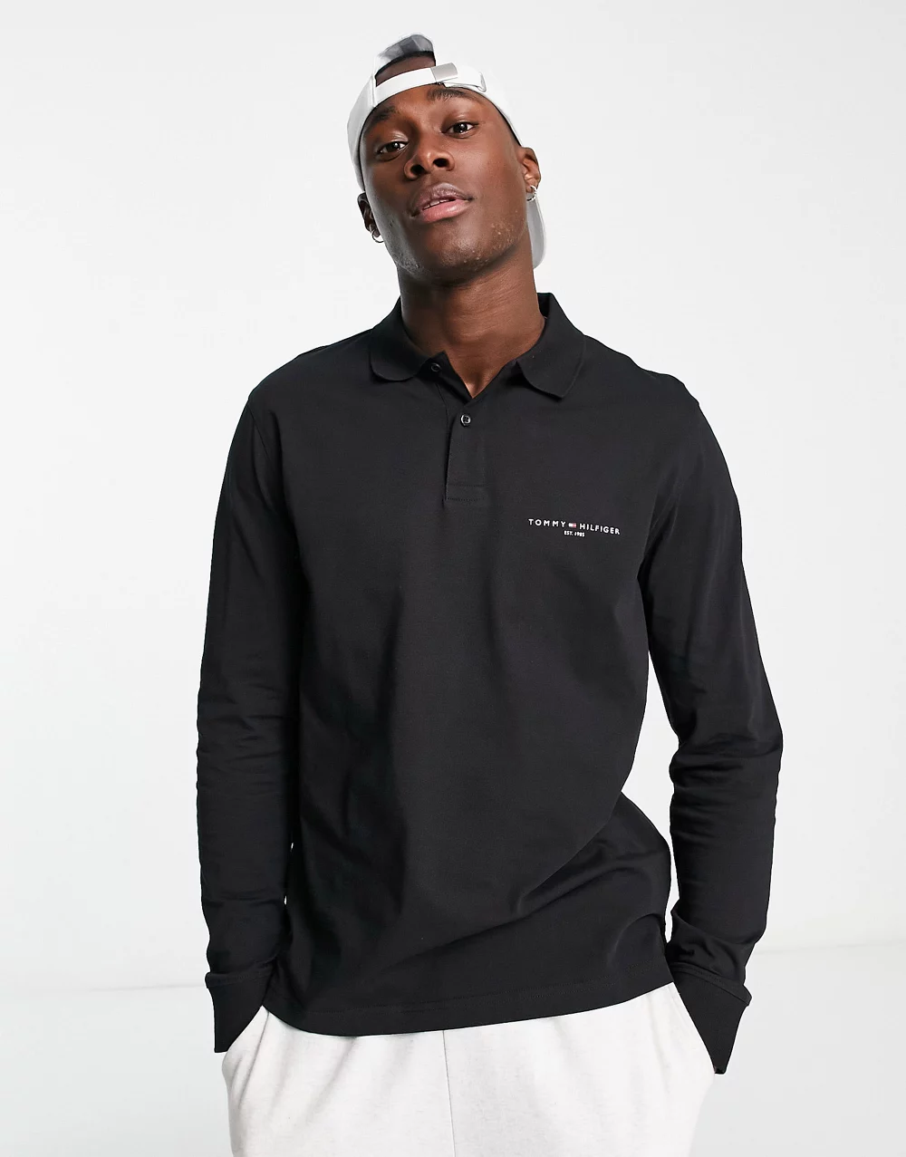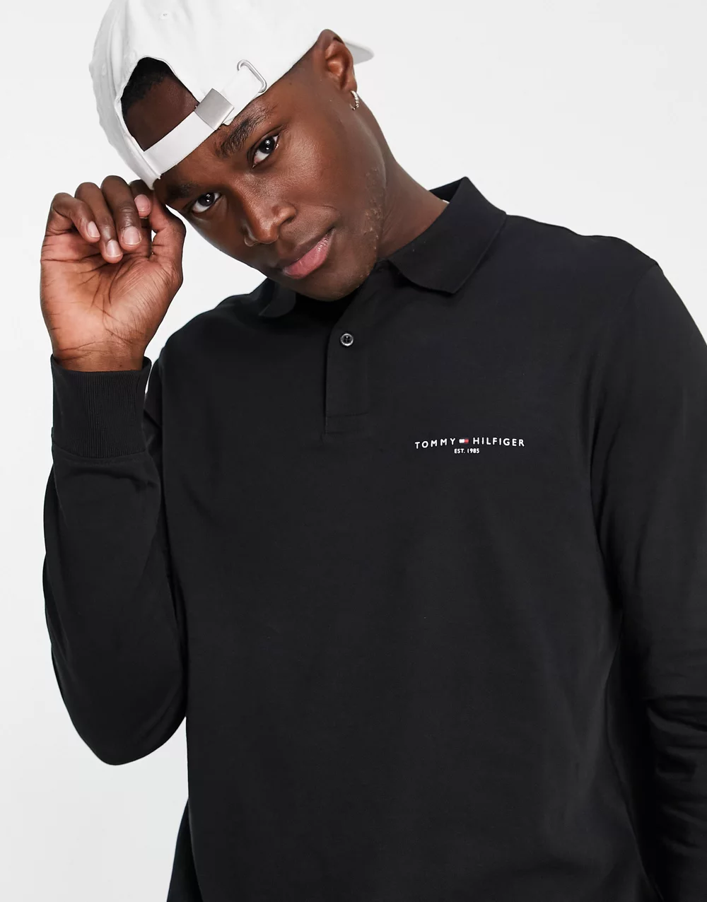 - Tommy Hilfiger script logo cotton jersey long sleeve polo in black